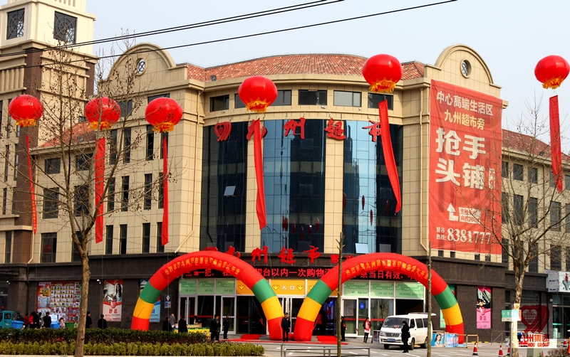 3月30日,九州超市公司慧谷領(lǐng)御店盛裝開(kāi)業(yè)。該店坐落于河東區人民大街與孝友路交匯處西北角,經(jīng)營(yíng)面積近5000平方米,主營(yíng)黃金珠寶、手機數碼、生鮮熟食、酒水飲料、膨化休閑、地方特產(chǎn)、日化洗滌、家居百貨、服裝鞋帽、針織床品、圖書(shū)影像、文體辦公等商品。