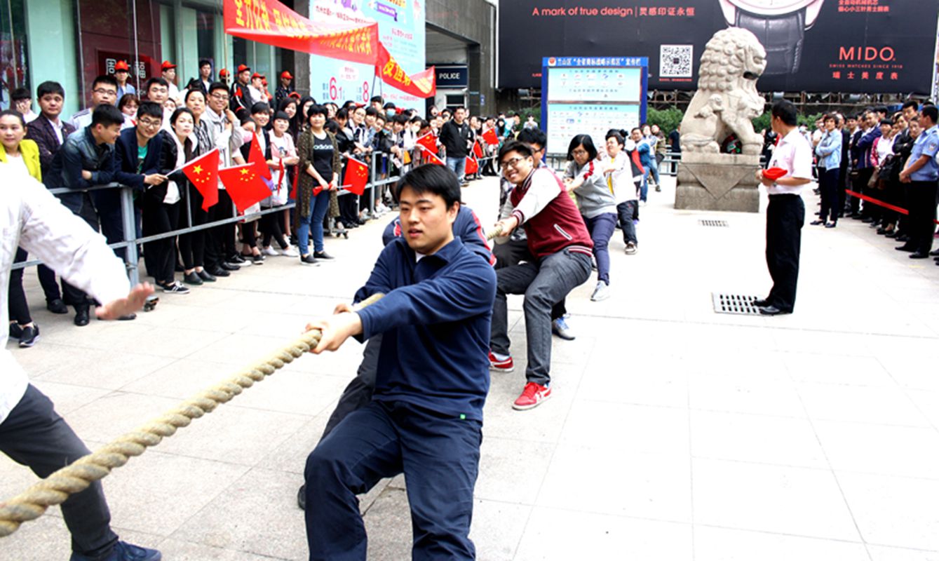 5月23日,由集團工會(huì )組織舉辦的拔河比賽在九州商業(yè)大廈門(mén)前廣場(chǎng)舉行。 本次比賽共有各經(jīng)營(yíng)單位和集團行政處室組成的六支代表隊參加比賽。場(chǎng)上每支代表隊由16名隊員組成,其中8名男隊員,8名女隊員。經(jīng)過(guò)小組循環(huán)賽、半決賽和總決賽,最終九州連鎖超市公司代表隊脫穎而出,再次衛冕冠軍,臨沂賓館代表隊和九州汽車(chē)銷(xiāo)售公司代表隊分別獲得二、三名,九州宜家佳代表隊、九州商業(yè)大廈代表隊和集團行政代表隊分列第四至六名。 比賽場(chǎng)上參賽隊員團結協(xié)作,勇于爭先,展現了良好的精神風(fēng)貌。一年一度拔河比賽的舉辦,豐富了職工的文化生活。