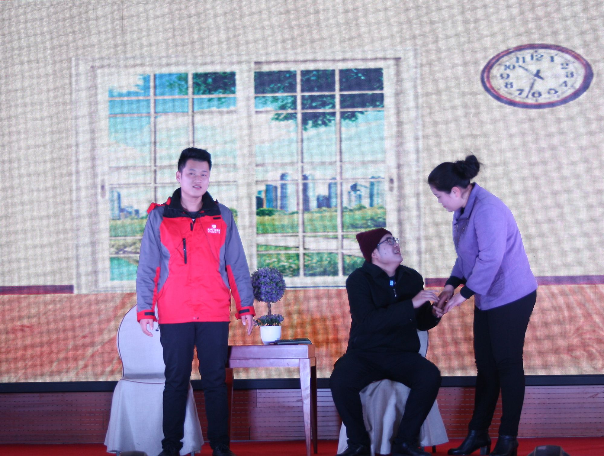 新春伊始,萬(wàn)象更新。1月13日晚,九州集團新春文藝晚會(huì )在臨沂賓館隆重舉行。集團領(lǐng)導、員工及家屬、退休職工等400余人一起觀(guān)看了文藝晚會(huì )。 文藝晚會(huì )在舞蹈《盛世歡歌》中拉開(kāi)序幕。三句半《九州大發(fā)展》以膾炙人口的語(yǔ)言、環(huán)環(huán)相扣的節奏,引來(lái)現場(chǎng)觀(guān)眾的陣陣掌聲。小品《家庭作業(yè)》講述了兩代人通過(guò)家庭作業(yè)給父母洗腳的故事,感悟到了生活的真諦。詩(shī)朗誦《無(wú)論多遠,我們都在身邊》,通過(guò)起承轉合、抑揚頓挫的朗誦向我們展示了汽貿公司一路發(fā)展的歷程,表達了對未來(lái)發(fā)展的希冀和展望。小品《快遞奇緣》訴說(shuō)了九州網(wǎng)上商城配送員與顧客的奇妙緣分,折射了網(wǎng)上商城的發(fā)展為廣大市民帶來(lái)的便利。舞蹈《月光下的鳳尾竹》《我愛(ài)你中國》更是帶給了我們一場(chǎng)美妙的視覺(jué)盛宴。經(jīng)過(guò)兩個(gè)半小時(shí)異彩紛呈的節目表演,最后,晚會(huì )在熱鬧非凡的舞蹈《合家歡》中落下帷幕。 文藝晚會(huì )由各單位精心選出的的17個(gè)節目組成,節目形式多樣,內容精彩,多角度展現了九州人朝氣蓬勃,奮發(fā)向上的精神風(fēng)貌,展現企業(yè)的新面貌、新變化,歌頌了企業(yè)的新發(fā)展、新未來(lái)。(集團辦公室 劉傳芳)