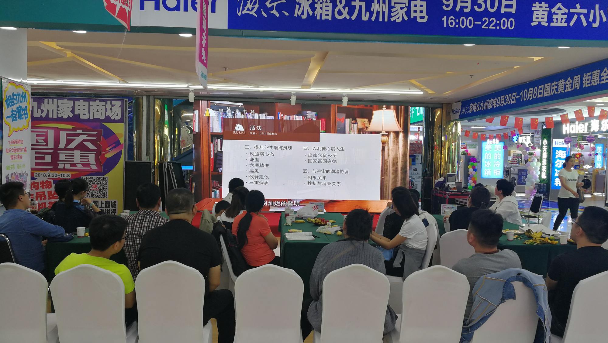 在喜迎國慶之際,九州家電聯(lián)合臨沂交通旅游廣播、樊登讀書(shū)會(huì )推出了“國慶書(shū)香 愛(ài)在十月”讀書(shū)分享活動(dòng),將目前國內知名的讀書(shū)平臺“樊登讀書(shū)會(huì )”線(xiàn)下活動(dòng)現場(chǎng)引入到九州家電賣(mài)場(chǎng)。 9月30日晚7點(diǎn),九州家電解放路店二樓商場(chǎng)休閑活動(dòng)區域打造成了氛圍深厚的讀書(shū)活動(dòng)現場(chǎng),近30位攀登讀書(shū)會(huì )的會(huì )員以及現場(chǎng)駐足的顧客參加了當晚的閱讀活動(dòng)。 當晚共讀書(shū)目為集團黨委推薦的《活法》,此書(shū)也是攀登讀書(shū)會(huì )的主推書(shū)目。讀書(shū)活動(dòng)以觀(guān)看視頻、文字解讀、分享交流為主,大家一起觀(guān)看聆聽(tīng)了樊登老師對《活法》一書(shū)的精彩講解,近一個(gè)小時(shí)的時(shí)間,每一位朋友都聽(tīng)得非常認真。隨后主持人引導大家對部分片斷進(jìn)行解讀,最后幾位會(huì )員又結合自己的生活、工作情況分享了讀書(shū)心得,他們真誠的講述打動(dòng)了現場(chǎng)人員,引來(lái)一陣陣熱烈的掌聲。 讀書(shū),是人們重要的學(xué)習方式,是文化傳承的通道,是人類(lèi)進(jìn)步的階梯。九州家電愿意助力“全民閱讀”,為喜歡讀書(shū)的朋友提供交流的平臺,愿意與廣大消費者一起,通過(guò)讀書(shū)交流,促進(jìn)彼此之間共同學(xué)習,共同成長(cháng)。(九州家電 馬琳)