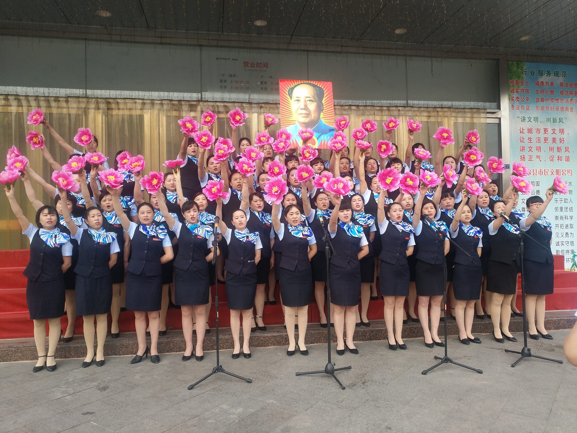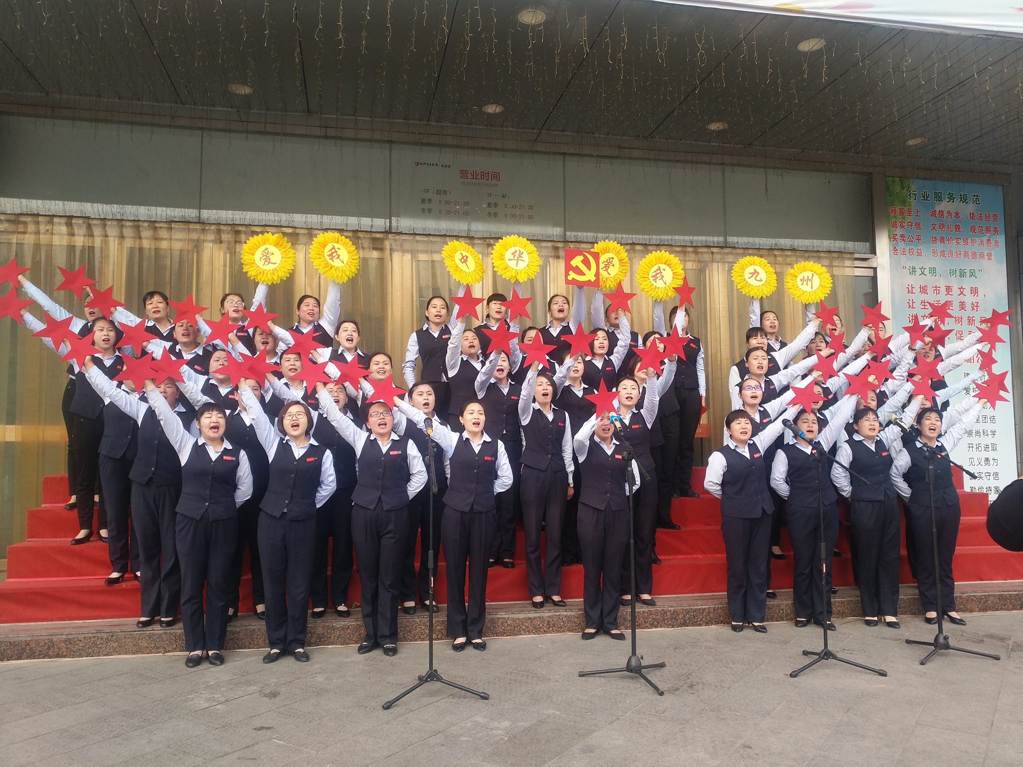 5月4日早上,大廈沂水區域門(mén)店在長(cháng)安店門(mén)前廣場(chǎng)舉行了慶“五四”合唱比賽活動(dòng)。 經(jīng)過(guò)激烈角逐,最終沂水店超市合唱《紅星歌》榮獲第一名,長(cháng)安店三樓合唱《國家》、長(cháng)安店超市合唱《紅色娘子軍》榮獲第二名,長(cháng)安店二樓合唱《我和我的祖國》、長(cháng)安店一樓合唱《時(shí)代號子》、新華店超市合唱《祖國不會(huì )忘記》、新華店二樓合唱《歌唱祖國》榮獲第三名。 7個(gè)方隊用嘹亮的歌聲吟唱了難忘的歲月,用熟悉的旋律演繹了時(shí)代的激情,合唱歌頌了中華民族自強不息的偉大精神,唱出了九州人闊步向前的豪邁氣概,歌聲催人奮進(jìn),氣勢振奮人心,充分展現了九州人良好的精神面貌。(文/黃明濤 圖/陳宇萍)