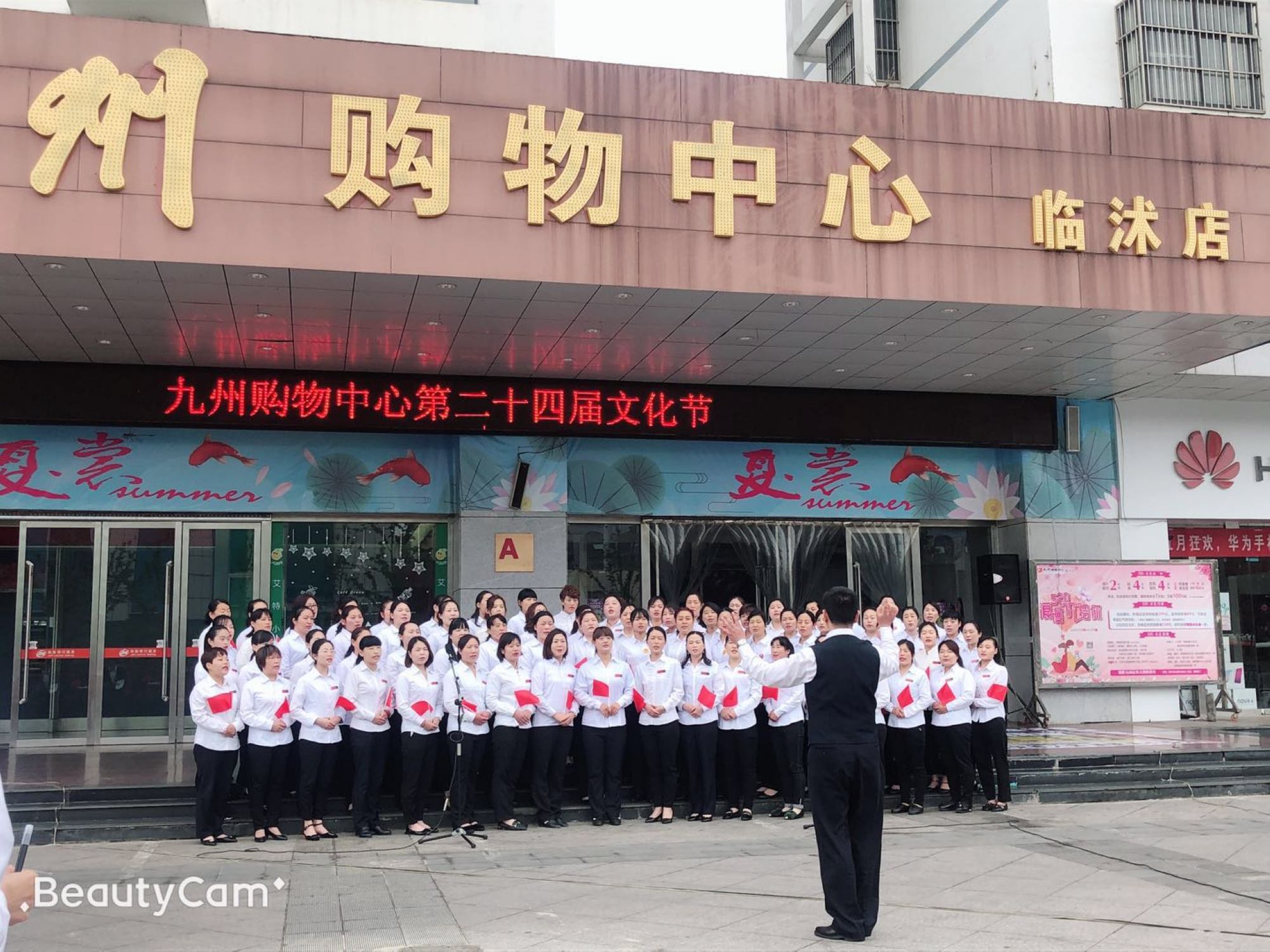 5月18日上午,九州大廈臨沭店在門(mén)前廣場(chǎng)舉行歌詠比賽。一大早,全體員工按照要求統一著(zhù)裝,畫(huà)著(zhù)精致的淡妝在門(mén)前廣場(chǎng)集合,為即將開(kāi)始的比賽做最后的排練。主持人認真的背著(zhù)主持詞,一遍一遍重復練習。 伴隨著(zhù)《九州集團之歌》的音樂(lè ),比賽正式拉開(kāi)了帷幕,首先是臨沭店百貨一部給大家帶來(lái)的《大中國》,接著(zhù)是百貨二部的《愛(ài)我中華》,最后超市壓軸帶來(lái)了《歌唱祖國》。唱到最后,全體員工一起加入進(jìn)來(lái),齊聲高歌,洪亮的歌聲引來(lái)了路人的駐足圍觀(guān);顒(dòng)的開(kāi)展展現了九州人積極向上的精神風(fēng)貌,樹(shù)立了良好的企業(yè)形象。(文圖/吳淑芳)