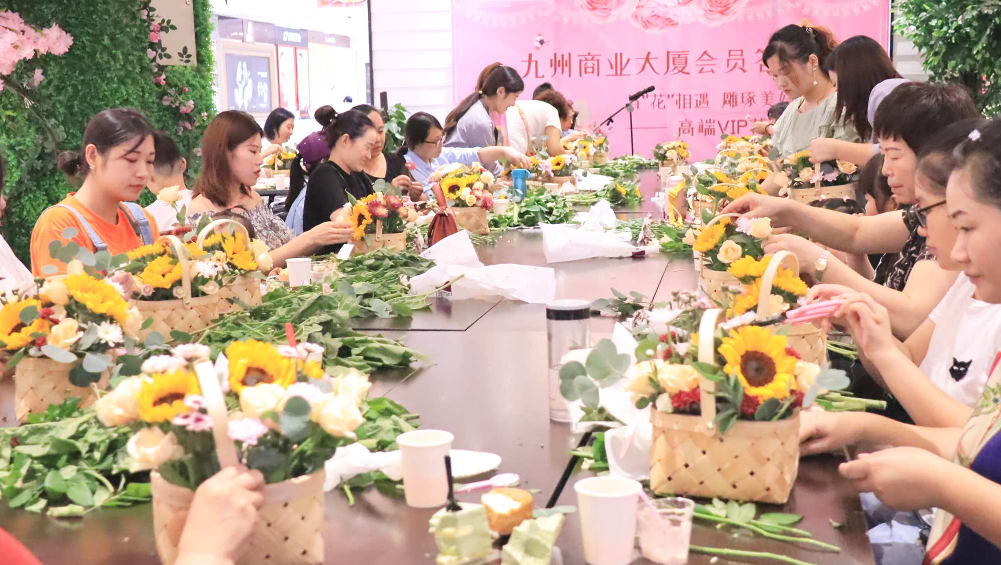 8月31日下午,九州商業(yè)大廈在一樓西南區舉辦“與花相遇 雕琢美好時(shí)光”為主題的會(huì )員花藝課堂答謝會(huì );顒(dòng)邀請了30余名女性會(huì )員的參與,在花藝老師的精心指導下完成了一次充滿(mǎn)樂(lè )趣的花藝之旅。 活動(dòng)現場(chǎng)花香四溢、鮮花簇擁,配合精制的蛋糕甜點(diǎn)營(yíng)造出獨有的浪漫氣息。首先,花藝老師用豐富的經(jīng)驗向在場(chǎng)的會(huì )員顧客傳授插花藝術(shù)的基本技巧以及插花所需的花材、形狀、色彩搭配等知識,使大家在理論知識上對插花藝術(shù)有了一個(gè)全新的認識。接下來(lái),在花藝老師的精心指導下,會(huì )員顧客用代表秋季的向日葵、玫瑰、小雛菊等插花素材創(chuàng )作出一件件時(shí)尚又獨具匠心的花藝作品。在四溢的生機與浪漫中,在悠然的花香浸染間,享受舒適與自然,并將這份飽含情誼的藝術(shù)品帶回與家人分享。 此次會(huì )員答謝活動(dòng),進(jìn)一步拉近了九州大廈與會(huì )員顧客之間的距離,加深了彼此的了解與溝通。(圖文/戚斌)