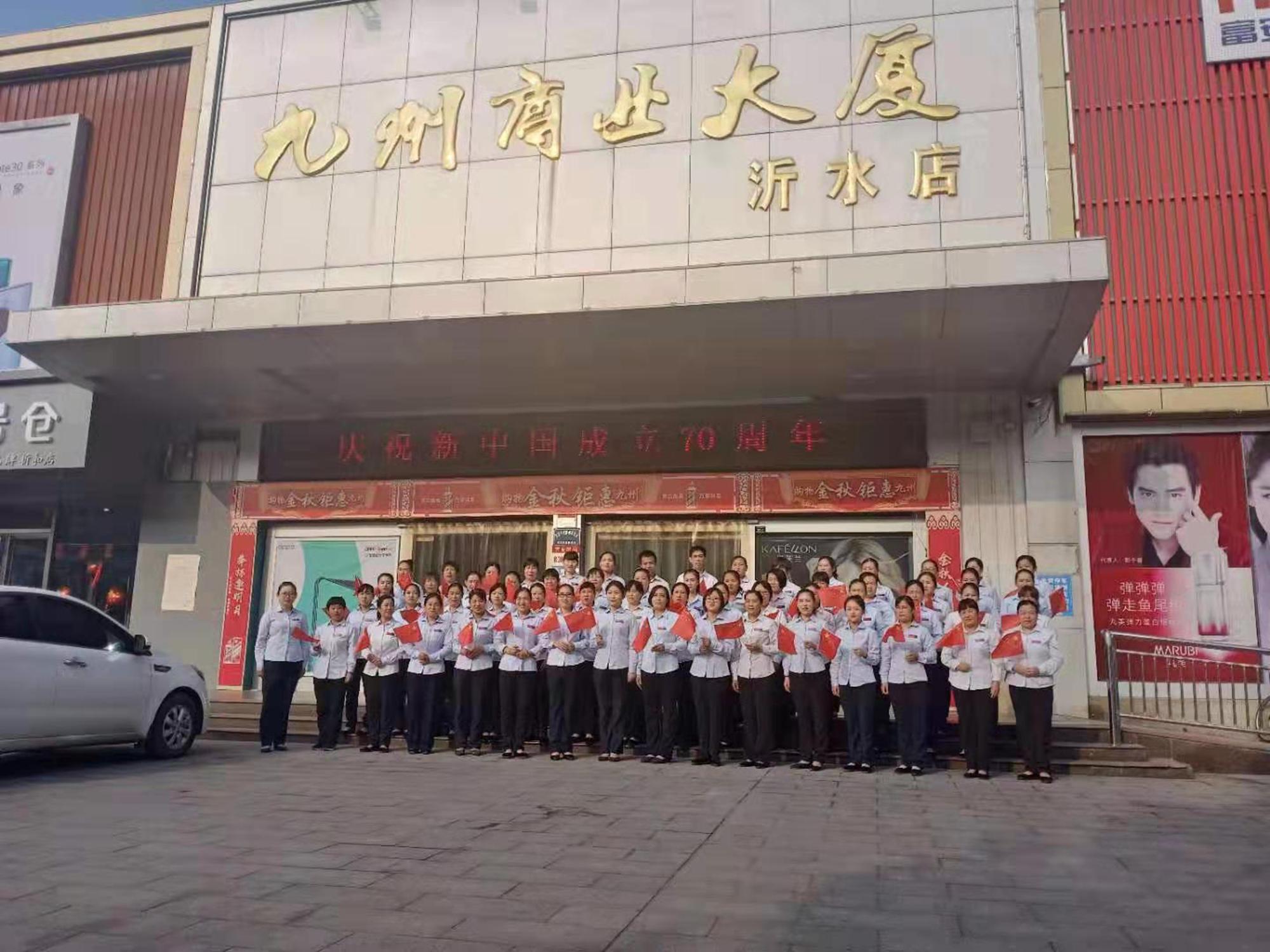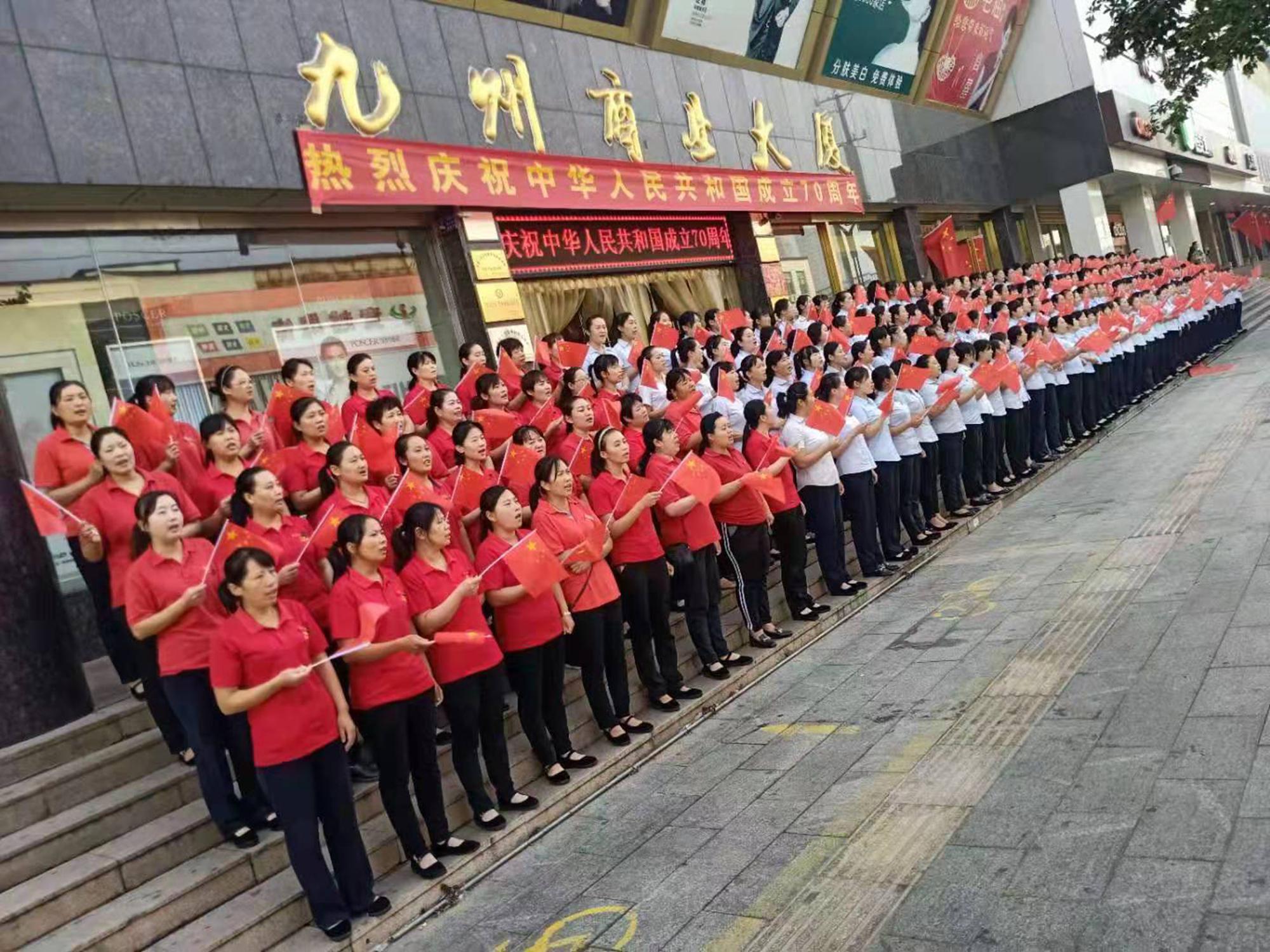 禮樂(lè )光輝盛,山河氣象新。躬逢新時(shí)代,頌歌獻祖國。 10月1日上午,九州商業(yè)大廈沂水區域門(mén)店分別在各店門(mén)前廣場(chǎng)舉行了慶國慶合唱活動(dòng)。先后合唱了《我和我的祖國》、《九州集團之歌》等歌曲。 同唱愛(ài)國歌,共筑九州夢(mèng)。歌聲唱出了九州人對祖國母親的無(wú)限熱愛(ài)和美好祝福,唱出了九州人團結奮進(jìn)、勇往直前的豪氣。這就是在世界東方生機盎然的中國,這就是在紅色沂蒙大地上蒸蒸日上的九州。(文圖/黃明濤)