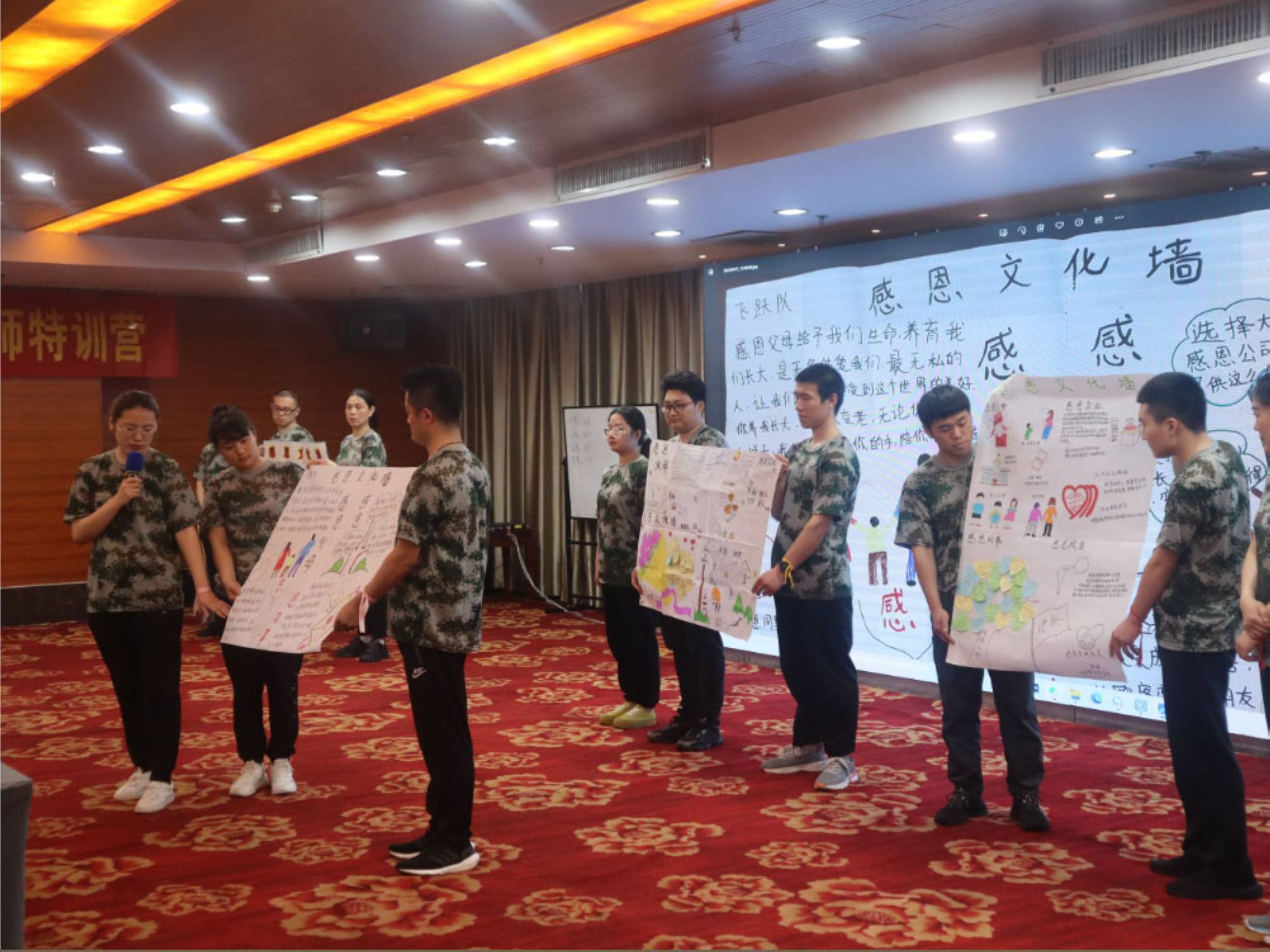 在三天兩夜的培訓中,各組通過(guò)團隊建設、項目錘煉來(lái)突破自我、逐漸融合,打造團隊凝聚力。在“我是誰(shuí)”環(huán)節,每位隊員挖掘自身的缺點(diǎn)、短板,直面自身的不足,消除前進(jìn)道路上的阻礙。在“感恩”環(huán)節,通過(guò)場(chǎng)景設置,讓隊員體會(huì )父母的養育之恩、企業(yè)的培育之情,感恩父母、感恩企業(yè),做一名懂得感恩的人。在“領(lǐng)袖風(fēng)采”環(huán)節,各隊依次從1至100報數,發(fā)生錯報、漏報、搶報等情況即懲罰隊長(cháng),讓隊員體驗在日常工作中管理人員所承擔的責任。在“人行榜樣”環(huán)節,隊員兩兩相對,雙手相互舉高支撐,站立90分鐘,隊員之間相互鼓勵,把簡(jiǎn)單的工作長(cháng)時(shí)間堅持做好,打造堅持不放棄的團隊。在“AB穿越”環(huán)節,隊員們?yōu)閷?shí)現目標,開(kāi)拓思維、大膽創(chuàng )新。在“同心桿”環(huán)節,各隊統一動(dòng)作、統一標準,克服團隊干擾,打造標準一致、行動(dòng)一致的團隊。