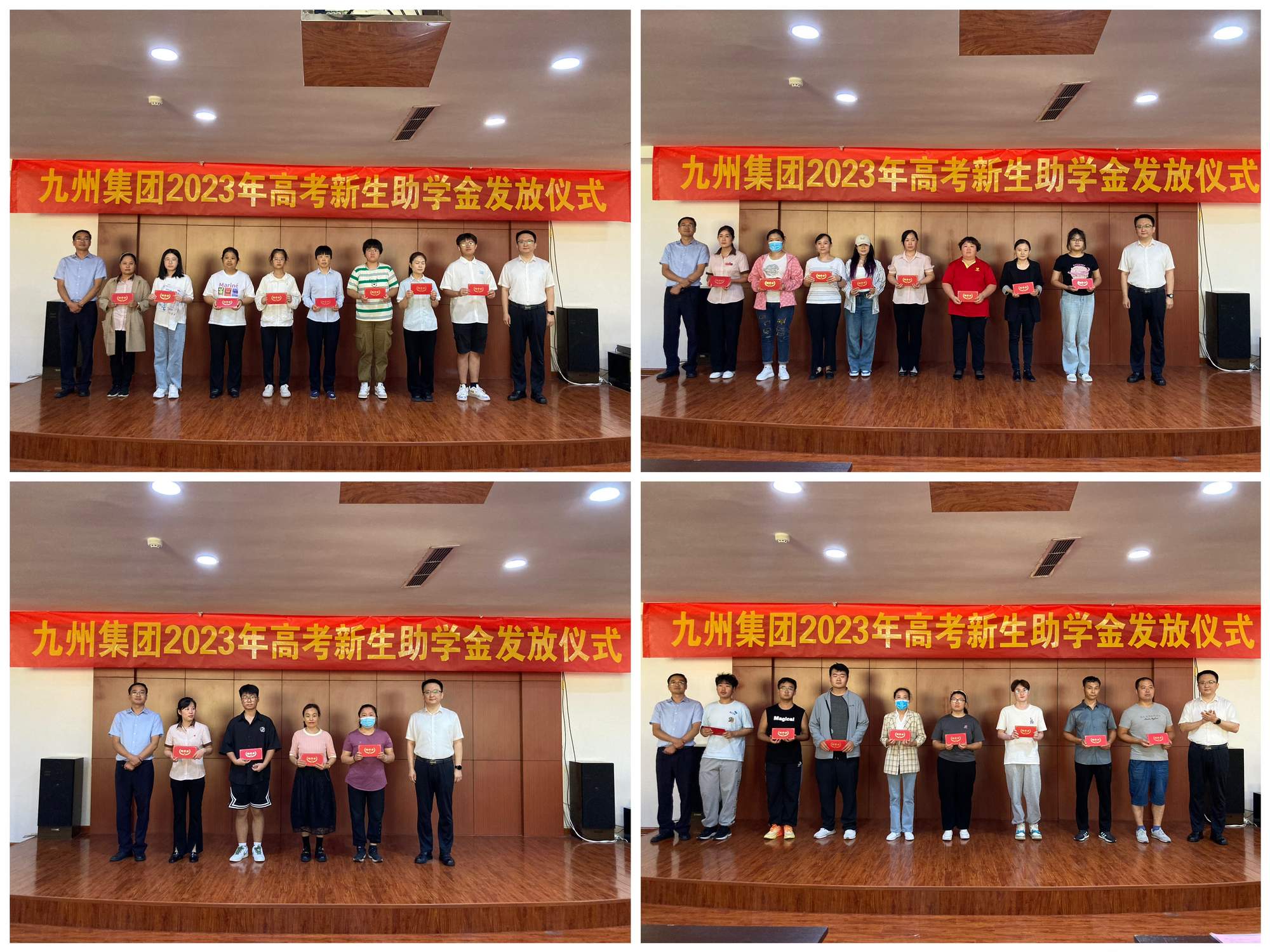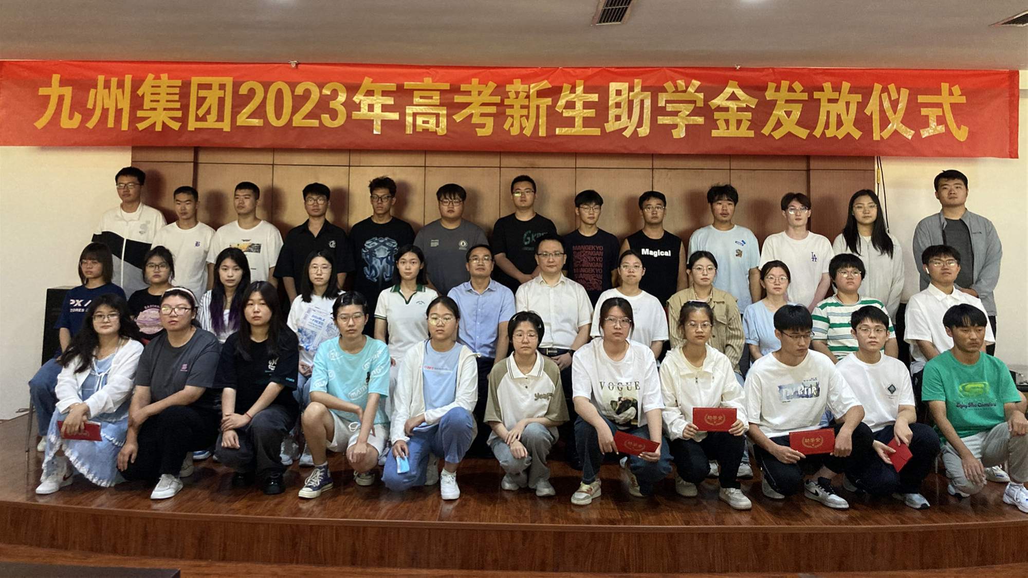 會(huì )上,為升入大學(xué)的職工子女頒發(fā)九州集團2023年高考助學(xué)金。本年度,集團共為91名升入大學(xué)的職工子女發(fā)放高考助學(xué)金共計23.5萬(wàn)元。
