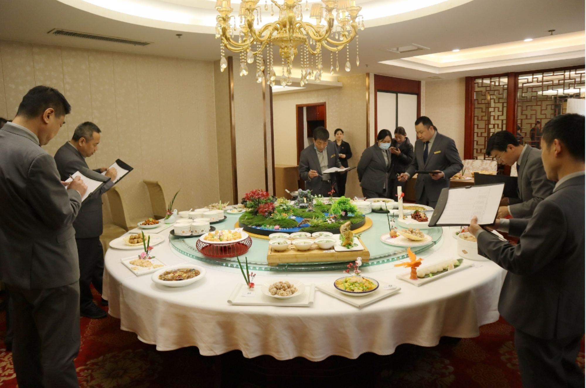 復評考核結束后,臨沂賓館召開(kāi)了現場(chǎng)會(huì )。會(huì )議要求,要重點(diǎn)對綜合技藝較弱的大廚進(jìn)行跟進(jìn)指導,以提高廚師團隊競爭力、提升菜品質(zhì)量;要加強廚師隊伍的培養與考核,指定專(zhuān)人進(jìn)行原料知識、烹調技法等基本功的培訓。同時(shí)要求各廚房對原有菜品進(jìn)行升級,在保證傳統魯菜品質(zhì)的基礎上,根據市場(chǎng)形勢和消費者需求,適時(shí)研究開(kāi)發(fā)新菜品,滿(mǎn)足廣大消費者多樣化的用餐需求。(文/王慧 圖/張家銘)