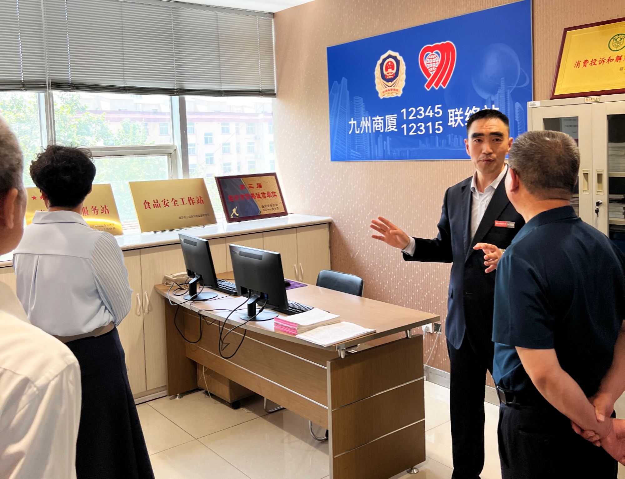 調研過(guò)程中,李曉向調研組介紹了九州集團客訴處理標準化管理和“總經(jīng)理信箱”監督平臺的成功經(jīng)驗;九州商業(yè)大廈客服部經(jīng)理劉景凱向調研組匯報了九州商業(yè)大廈消費維權服務(wù)站日常工作情況和提質(zhì)降量工作措施。張艷果一行對九州商業(yè)大廈消費維權工作的開(kāi)展情況給予了充分的肯定。