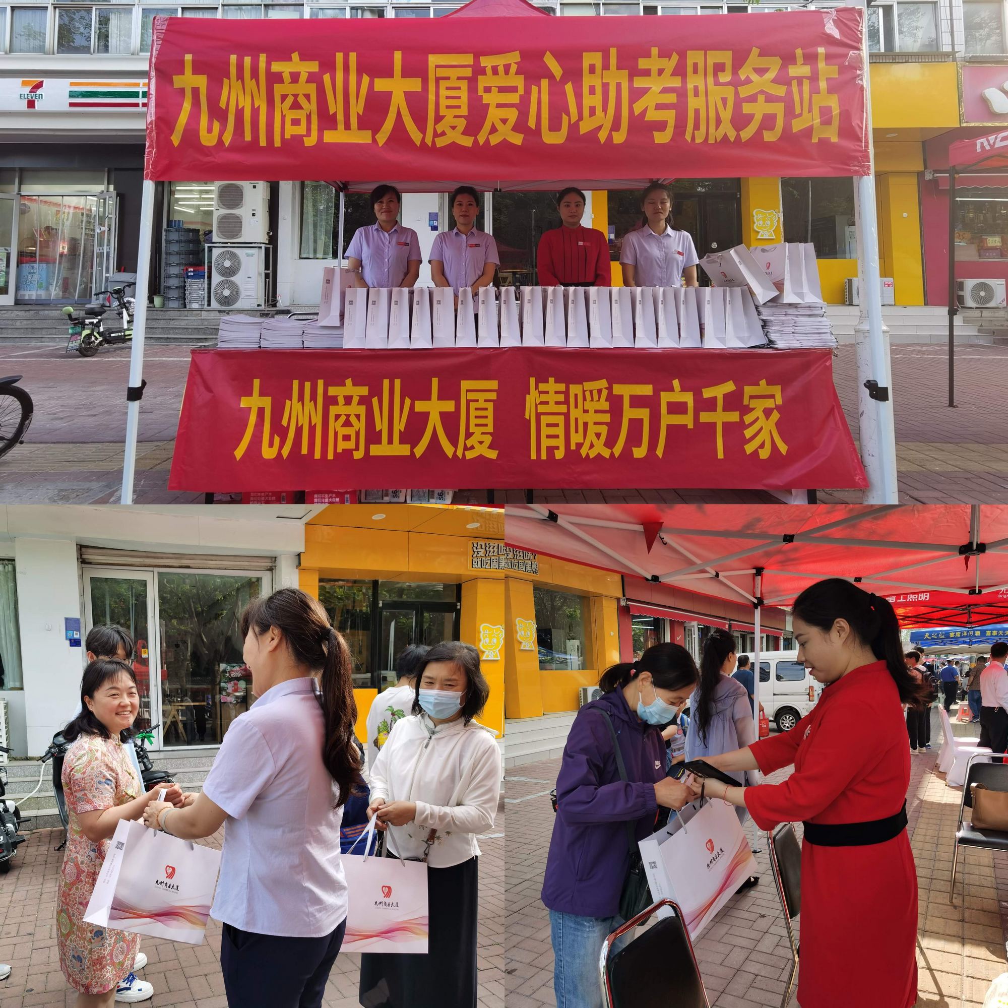 6月7日上午,九州商業(yè)大廈團支部組織團干部及優(yōu)秀團員在臨沂市第一中學(xué)考點(diǎn)設立愛(ài)心助考服務(wù)站,為考生及家長(cháng)免費發(fā)放飲用水、抽紙等物品,為他們送上了精心準備的“助考加油包”,并為考生及家長(cháng)提供路況信息、道路引導等服務(wù),為莘莘學(xué)子貢獻九州商業(yè)大廈的一份力量。