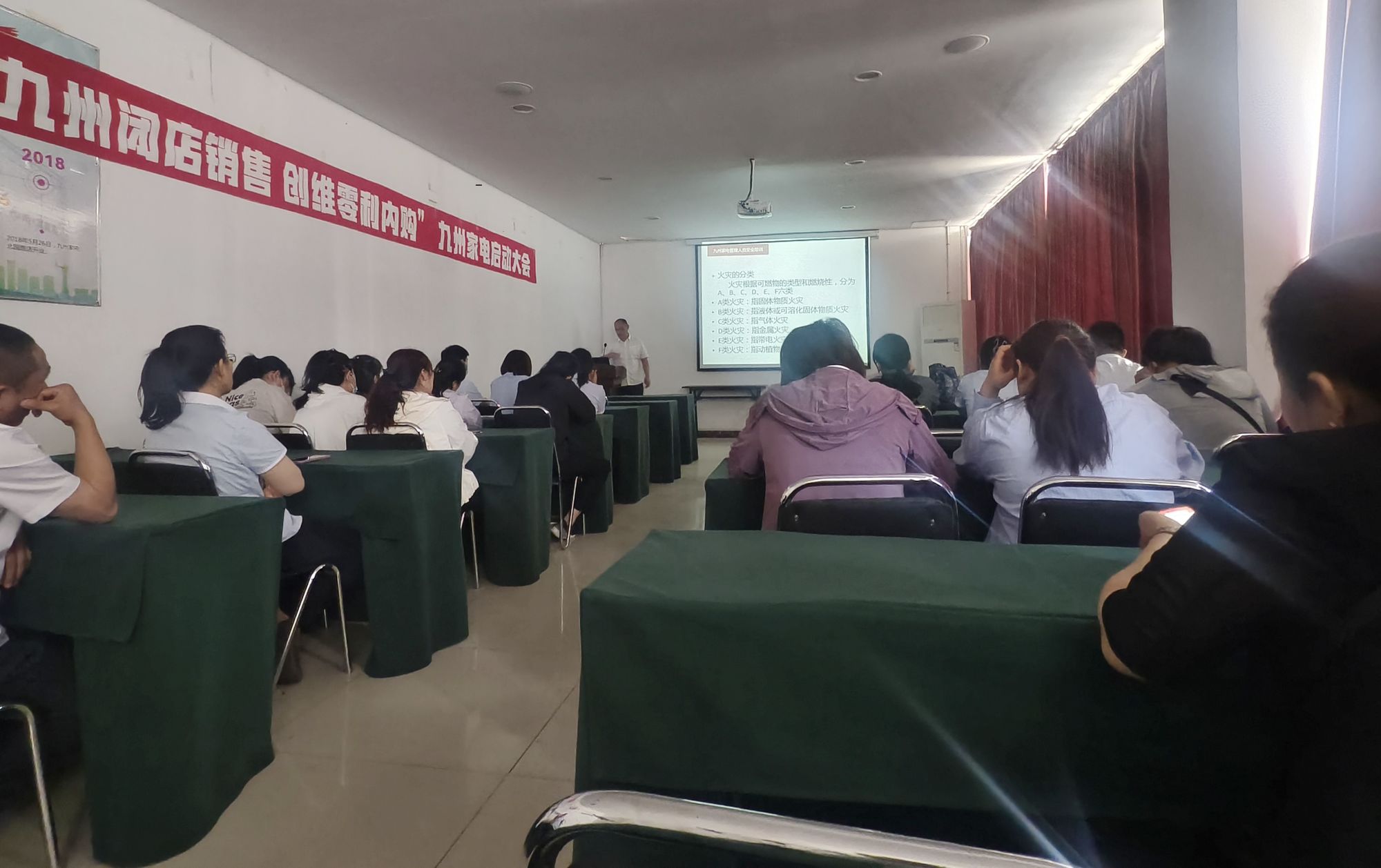 5月29日上午,九州家電在解放路店二樓會(huì )議室組織開(kāi)展上半年消防安全培訓,各門(mén)店共40余名員工參加。