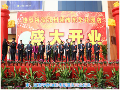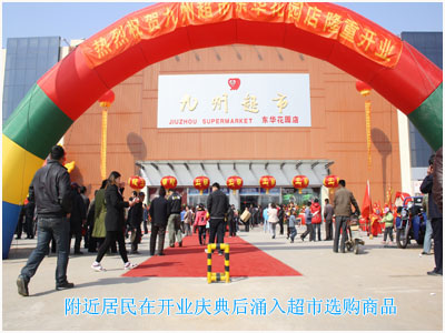 3月26日,位于臨沂經(jīng)濟技術(shù)開(kāi)發(fā)區的九州超市東華花園店與九州商務(wù)中心項目分別舉行了開(kāi)業(yè)慶典和奠基儀式。市政府副秘書(shū)長(cháng)趙富軍,市商務(wù)局局長(cháng)祖旭東,臨沂經(jīng)濟技術(shù)開(kāi)發(fā)區黨工委書(shū)記、管委會(huì )主任徐福田等領(lǐng)導出席儀式。 九州超市東華花園店位于經(jīng)濟開(kāi)發(fā)區核心商業(yè)位置,是九州連鎖超市公司的第17家直營(yíng)門(mén)店,建筑面積15000?。主要經(jīng)營(yíng)名煙名酒、糧油副食、洗滌化妝、日用百貨、服裝鞋帽、針紡用品、文體用品等1萬(wàn)余種商品,預計年實(shí)現銷(xiāo)售額7000萬(wàn)元。 九州商務(wù)中心項目,占地約10萬(wàn)平方米,建筑面積約12萬(wàn)平方米,總投資3億多元。該項目由大型購物中心、高檔寫(xiě)字樓、物流配送中心以及精品商業(yè)店鋪等經(jīng)營(yíng)業(yè)態(tài)組成。大型購物中心建成后,將成為經(jīng)濟開(kāi)發(fā)區面積最大、功能最全、檔次最高、設施最好的大型購物場(chǎng)所。物流配送中心項目建成后,年實(shí)現商品配送額約30億元,將是魯南地區單體建筑最大的連鎖配送中心。