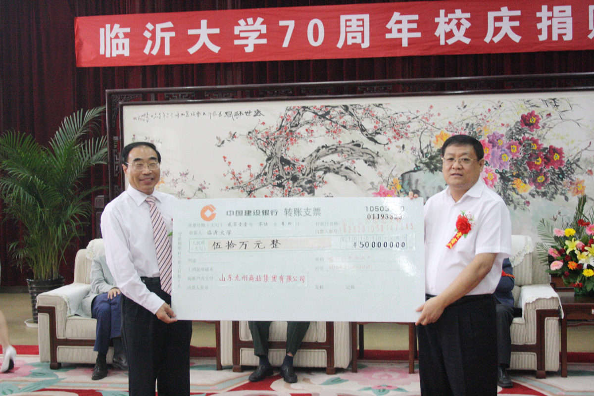 在臨沂大學(xué)喜迎70華誕之際,集團向臨沂大學(xué)捐款50萬(wàn)元,支持臨沂大學(xué)辦學(xué)。董事長(cháng)楊沂城,黨委書(shū)記王佐文出席捐贈儀式。