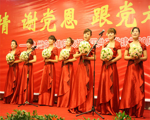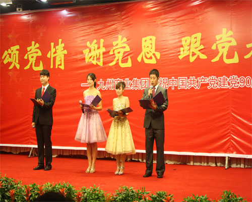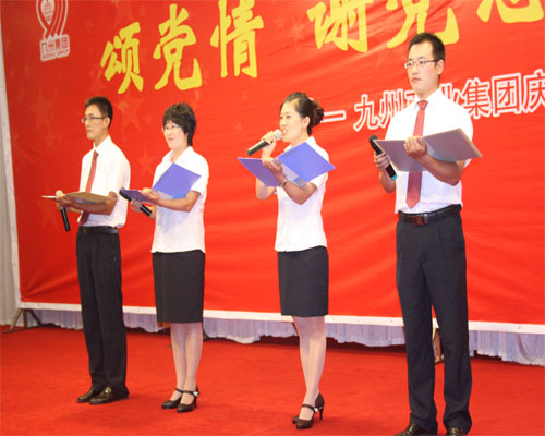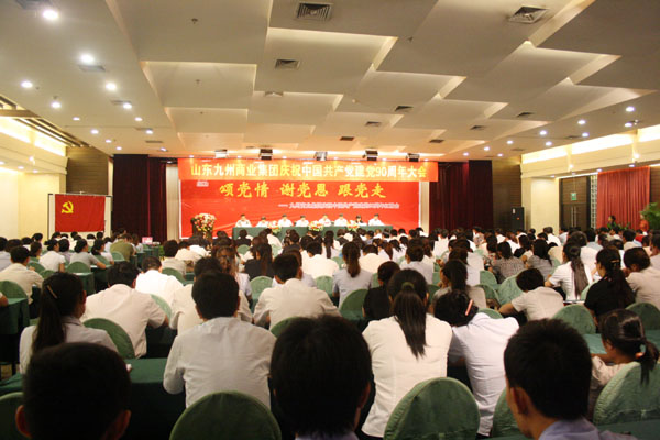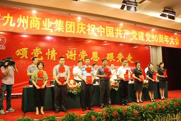 在舉國上下喜迎中國共產(chǎn)黨建黨90周年之際,集團黨委于6月28日在臨沂賓館舉行慶祝中國共產(chǎn)黨建黨九十周年大會(huì )暨“頌黨情 謝黨恩 跟黨走”紅歌會(huì )。 董事長(cháng)楊沂城同志宣讀《關(guān)于表彰2010年度先進(jìn)黨支部和優(yōu)秀共產(chǎn)黨員的決定》,黨委書(shū)記王佐文同志作《中共山東九州商業(yè)集團有限公司委員會(huì )2010年度工作報告》,楊永東同志主持大會(huì )并帶領(lǐng)新黨員宣誓。 會(huì )上,來(lái)自集團各部位的43名優(yōu)秀共產(chǎn)黨員和九州大廈黨支部、連鎖超市黨支部?jì)蓚(gè)黨支部受到表彰。九州大廈楊翔飛同志、超市公司杜立勇同志分別代表先進(jìn)黨支部和優(yōu)秀共產(chǎn)黨員發(fā)言。隨后,全體黨員一起觀(guān)看了“頌黨情 謝黨恩 跟黨走”大型紅歌會(huì )。