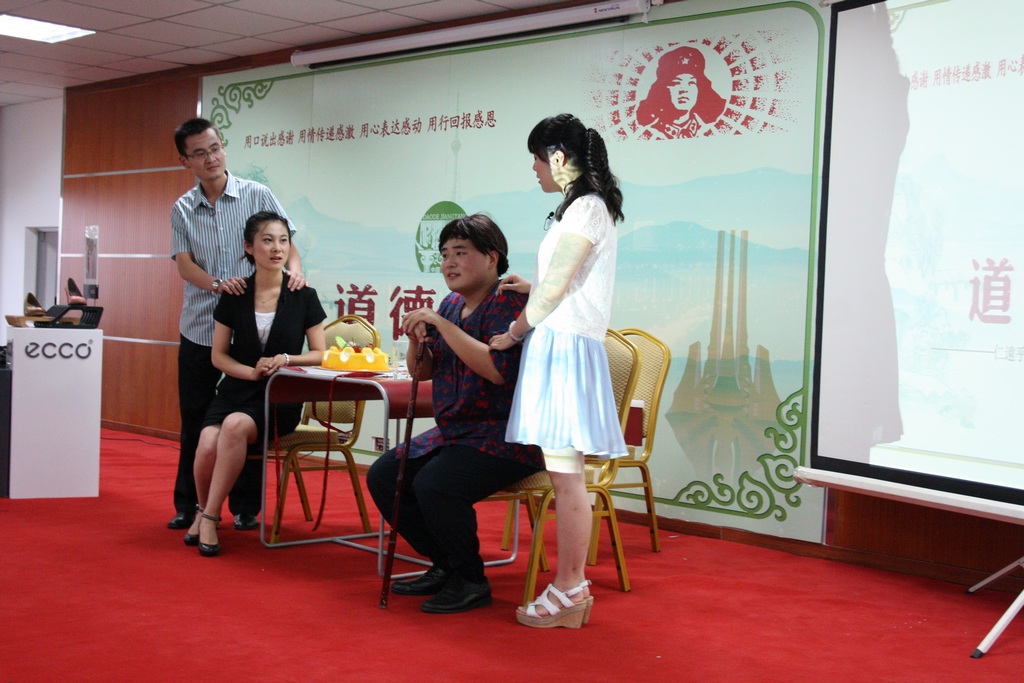 大廈員工在表演根據身邊真實(shí)故事改編的短劇《生日》