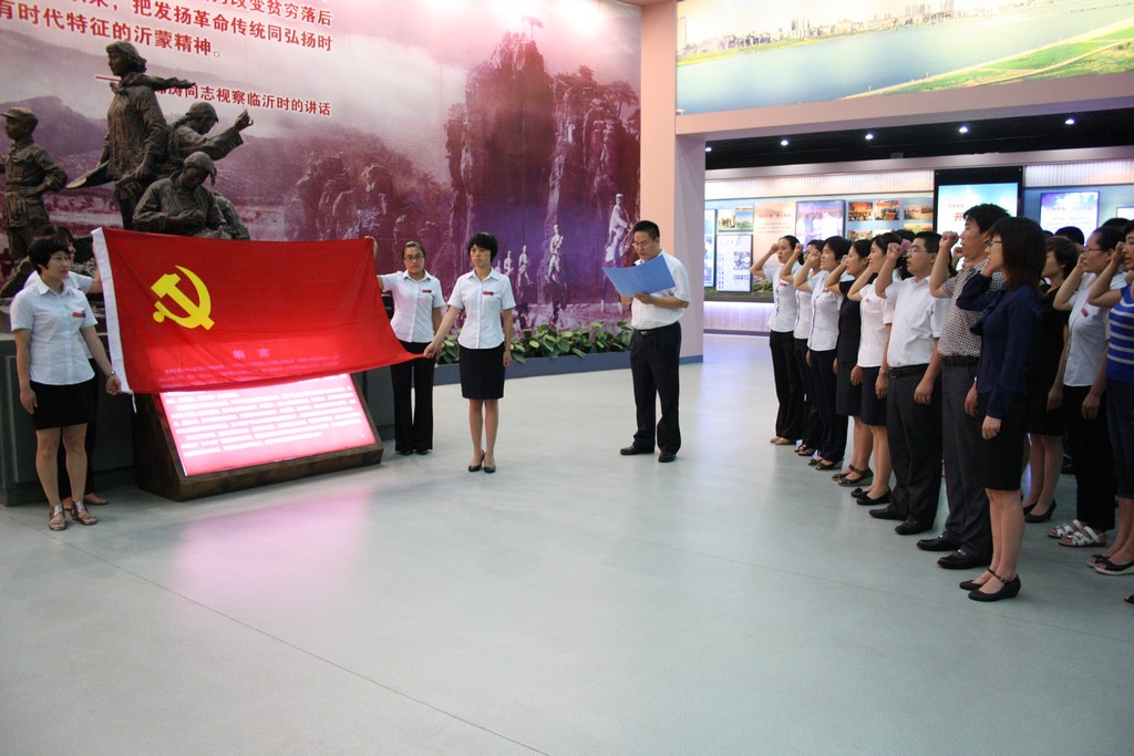 弘揚沂蒙精神,接受革命傳統教育;繼承先烈遺志,做一名合格的共產(chǎn)黨員。在中國共產(chǎn)黨建黨91周年之際,集團黨委于7月5日上午,組織預備黨員、入黨積極分子120余人赴華東革命烈士陵園,舉行新黨員宣誓儀式,并參觀(guān)沂蒙精神展。 雨中的華東革命烈士陵園,松柏蒼翠逼人,革命烈士紀念塔愈發(fā)莊重肅穆。一磚一瓦,一草一木,都在無(wú)聲訴說(shuō)著(zhù)革命先烈的英雄事跡。在沂蒙精神展館,這個(gè)記錄革命先輩豐功偉績(jì),傳承沂蒙精神的地方,集團黨委副書(shū)記、組織委員楊永東帶領(lǐng)30余名預備黨員,面對黨旗莊嚴宣誓,加入中國共產(chǎn)黨。隨后,全體預備黨員和入黨積極分子一起參觀(guān)沂蒙精神展,珍貴的歷史照片,革命先烈的遺物,復原的戰爭場(chǎng)景、講解員的細致講解……讓我們重溫了沂蒙光榮和輝煌的過(guò)去,再現了沂蒙人民為新中國的成立和建設自己的美好家園作出的巨大奉獻和不懈努力。 這次活動(dòng),給大家上了一堂特殊的“黨課”,大家紛紛表示要進(jìn)一步弘揚偉大的沂蒙精神,繼承和發(fā)揚革命先烈遺志和光榮革命傳統,堅定信念,以實(shí)際行動(dòng)做一名合格的共產(chǎn)黨員。