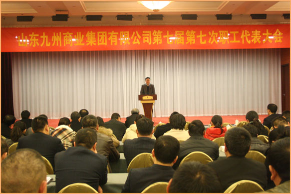 2月21日下午,山東九州商業(yè)集團有限公司第七屆職工代表大會(huì )第七次會(huì )議在臨沂賓館召開(kāi),來(lái)自各單位的117名職工代表參加會(huì )議,工會(huì )主席石紹獻主持會(huì )議。集團領(lǐng)導出席會(huì )議,集團中層以上非職工代表列席會(huì )議。 會(huì )上,楊永東通報了集團2012年度經(jīng)營(yíng)和費用開(kāi)支情況;審議表決通過(guò)了《企業(yè)工資專(zhuān)項集體合同》;對申報“臨沂市勞動(dòng)關(guān)系和諧企業(yè)”形成了決議;審議表決通過(guò)了《集團中層崗位競爭上崗管理標準》、《集團評先樹(shù)優(yōu)管理規定》和《集團計劃生育管理標準》等三個(gè)管理制度。董事長(cháng)楊沂城在會(huì )上通報了集團2012年基建投資情況,介紹了2013年投資計劃,并對經(jīng)營(yíng)管理工作和安全問(wèn)題作了強調。 會(huì )上,職工代表們以高度的使命感和主人翁精神,審議各項報告、方案、制度和標準,積極行使自己參與公司民主決策、民主管理和民主監督的權利。
