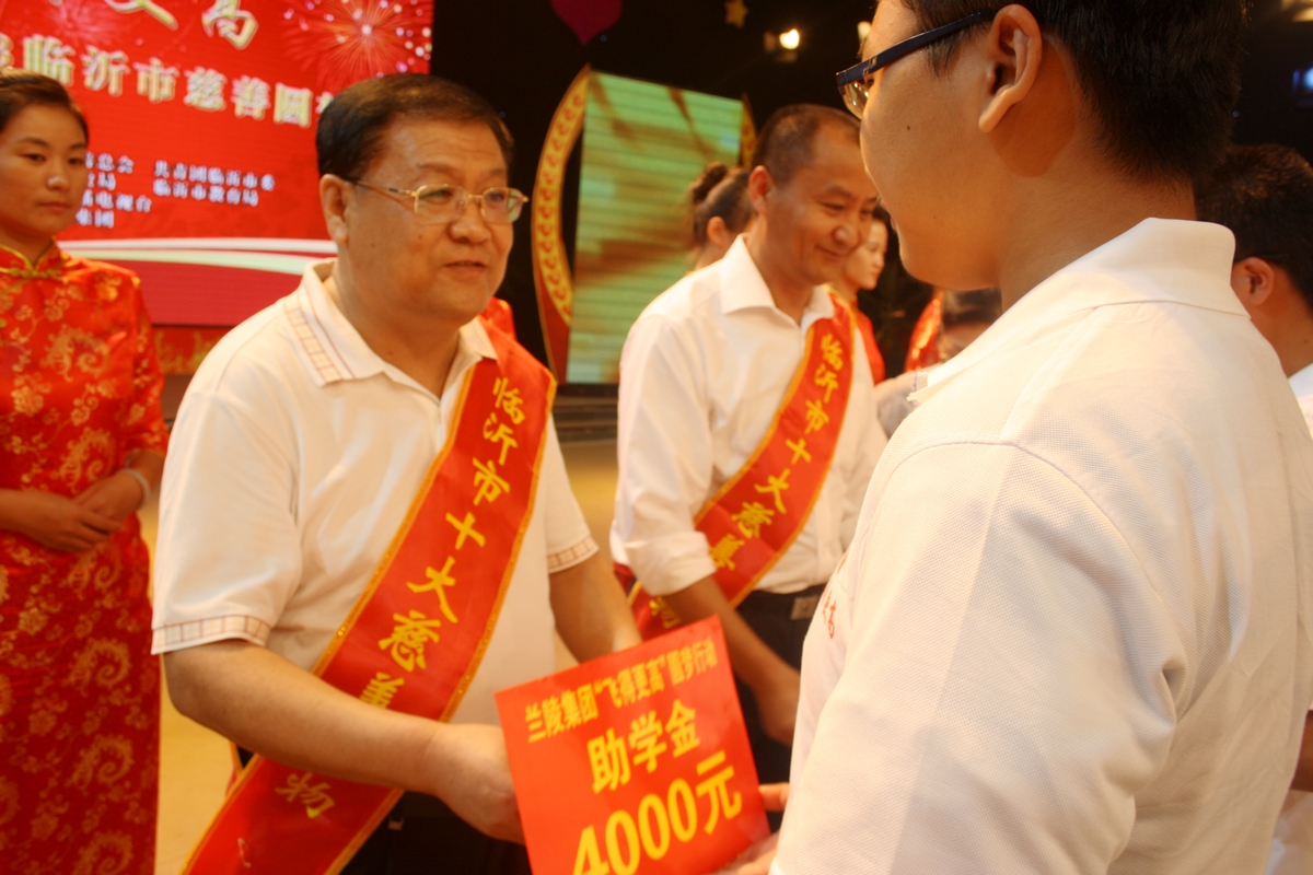 晚會(huì )結束后,省市領(lǐng)導與臨沂市十大慈善家合影留念 8月20日,臨沂市2013年慈善圓夢(mèng)晚會(huì )在市廣電大廈演播大廳舉行。原副省長(cháng)、山東省慈善總會(huì )會(huì )長(cháng)謝玉堂,市委書(shū)記、市人大常委會(huì )主任張少軍,市委副書(shū)記李峰等領(lǐng)導出席。晚會(huì )現場(chǎng)對2013年十大慈善單位,十大慈善個(gè)人進(jìn)行表彰。 會(huì )上,臨沂市慈善總會(huì )、臨沂市民政局授予集團“臨沂慈善獎”榮譽(yù)稱(chēng)號,授予集團董事長(cháng)楊沂城“臨沂市十大慈善家”榮譽(yù)稱(chēng)號,以表彰我集團為我市慈善事業(yè)作出的突出貢獻。 九州慈善基金自2008年8月設立以來(lái),累計發(fā)放助學(xué)金200余萬(wàn)元,先后對來(lái)自全市各地的600余名寒門(mén)學(xué)子進(jìn)行救助。目前,該項目已成為我市知名的慈善助學(xué)品牌,并先后榮獲“臨沂慈善獎”,“山東慈善獎”等獎項。