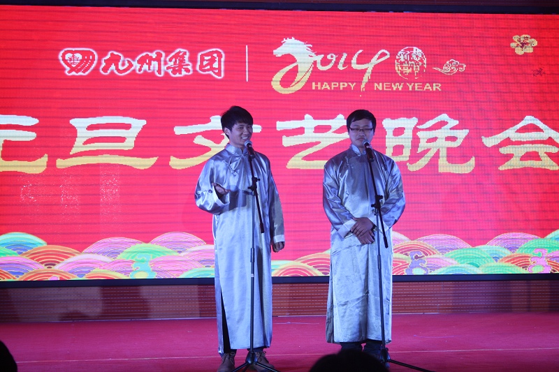 12月28日晚,九州集團2014年元旦文藝晚會(huì )在臨沂賓館舉行。楊沂城、王佐文、楊永東等集團領(lǐng)導與廣大員工、員工家屬一起觀(guān)看演出,共慶元旦佳節。 晚會(huì )開(kāi)始前,集團黨委書(shū)記王佐文代表集團董事會(huì )和黨委致辭。他向廣大員工、員工家屬及廣大離退休老同志致以節日的問(wèn)候,祝大家新年快樂(lè )、身體健康、闔家幸福、萬(wàn)事如意。 晚會(huì )在歡快、喜慶的舞蹈《歡聚一堂》中拉開(kāi)帷幕,小品《請講普通話(huà)》,從一個(gè)側面反映了身處服務(wù)行業(yè)講普通話(huà)的重要性;音樂(lè )劇《我的未來(lái)不是夢(mèng)》,引起了眾多年輕人的共鳴;《算盤(pán)舞》,古老的文化讓年輕的姑娘們演繹出了別樣的精彩;《春暖花開(kāi)》,熱烈的場(chǎng)面,歡快的節奏,贏(yíng)得了陣陣掌聲;小品《幸福來(lái)敲門(mén)》充滿(mǎn)深情的表演,講述了一個(gè)溫暖的故事……。這些員工自編自演的節目,貼近生活,聯(lián)系實(shí)際,引起了大家的共鳴,贏(yíng)得了大家的好評,讓觀(guān)眾始終沉醉在喜慶歡樂(lè )的氛圍中。 晚會(huì )結束后,集團領(lǐng)導在舞臺上與演職人員合影留念,祝賀演出成功。春暖花開(kāi)
