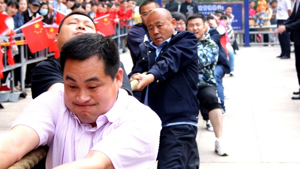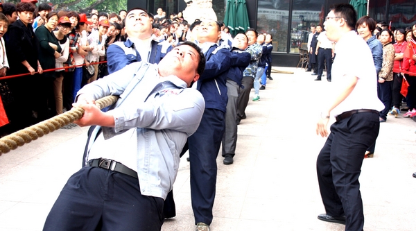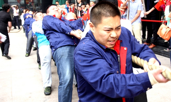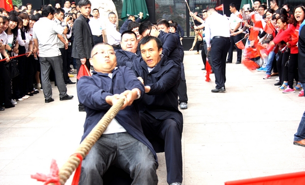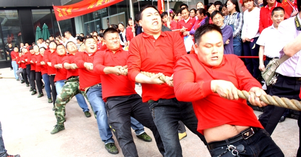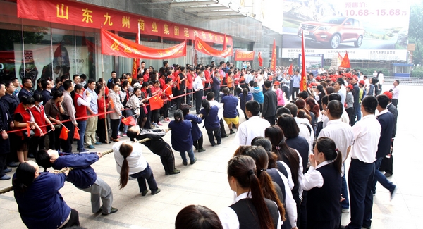 九州大廈代表隊 凝聚團結的力量,展示協(xié)作的魅力。5月18日,集團運動(dòng)會(huì )拔河比賽項目在九州商業(yè)大廈門(mén)前廣場(chǎng)舉行。 本次比賽共有各經(jīng)營(yíng)單位和集團行政支部組成的六支代表隊參加。每隊派出男女各8名運動(dòng)員,經(jīng)過(guò)小組循環(huán)賽、半決賽和總決賽,共十輪緊張激烈的比賽,最終,連鎖超市公司代表隊獲得冠軍,臨沂賓館代表隊和九州大廈代表隊分獲二、三名,九州宜家佳代表隊、汽車(chē)銷(xiāo)售公司代表隊和集團行政代表隊分列四至六名。 通過(guò)舉辦拔河比賽活動(dòng),不僅豐富了員工的文化生活,也培養了大家團結協(xié)作、拼搏進(jìn)取、永不放棄、堅持到底的精神。