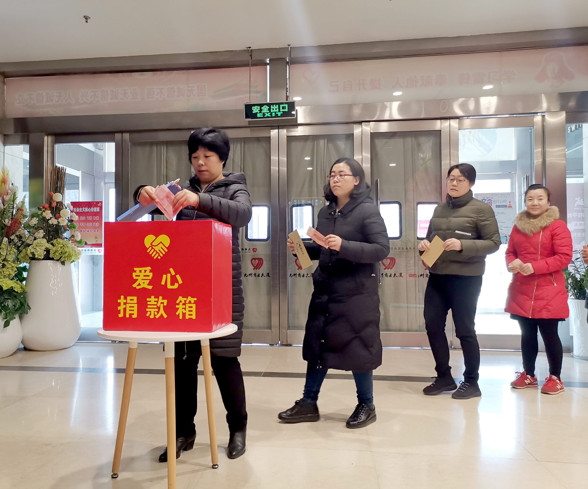疾病無情,人間有愛。九州大廈解放路店超市理貨員孟凡俊16歲的獨生女兒年前被診斷為紅斑狼瘡風濕免疫類重大疾病,僅一個月的時間治療費用就高達20多萬元。由于病情加重,目前已轉(zhuǎn)至該醫(yī)院的重癥監(jiān)護室,每天的治療費用接近3萬元。作為普通職工的孟凡俊夫婦已無力承擔巨額的醫(yī)療費用,這個家庭正需要大家的幫助。 2月23日上午,九州大廈在解放路店組織了向孟凡俊家庭獻愛心募捐活動。九州大廈領(lǐng)導班子帶頭捐贈,中層管理人員積極響應(yīng),大廈職工也紛紛獻出自己的一份愛心,活動共收到募捐款43618元。一人有難,眾人相幫,不是親人,勝似親人,善款有價,愛心無價,九州大廈全體員工用愛心去溫暖這個家庭,讓他們重新燃起生活的希望。(九州大廈行政部 戚斌)