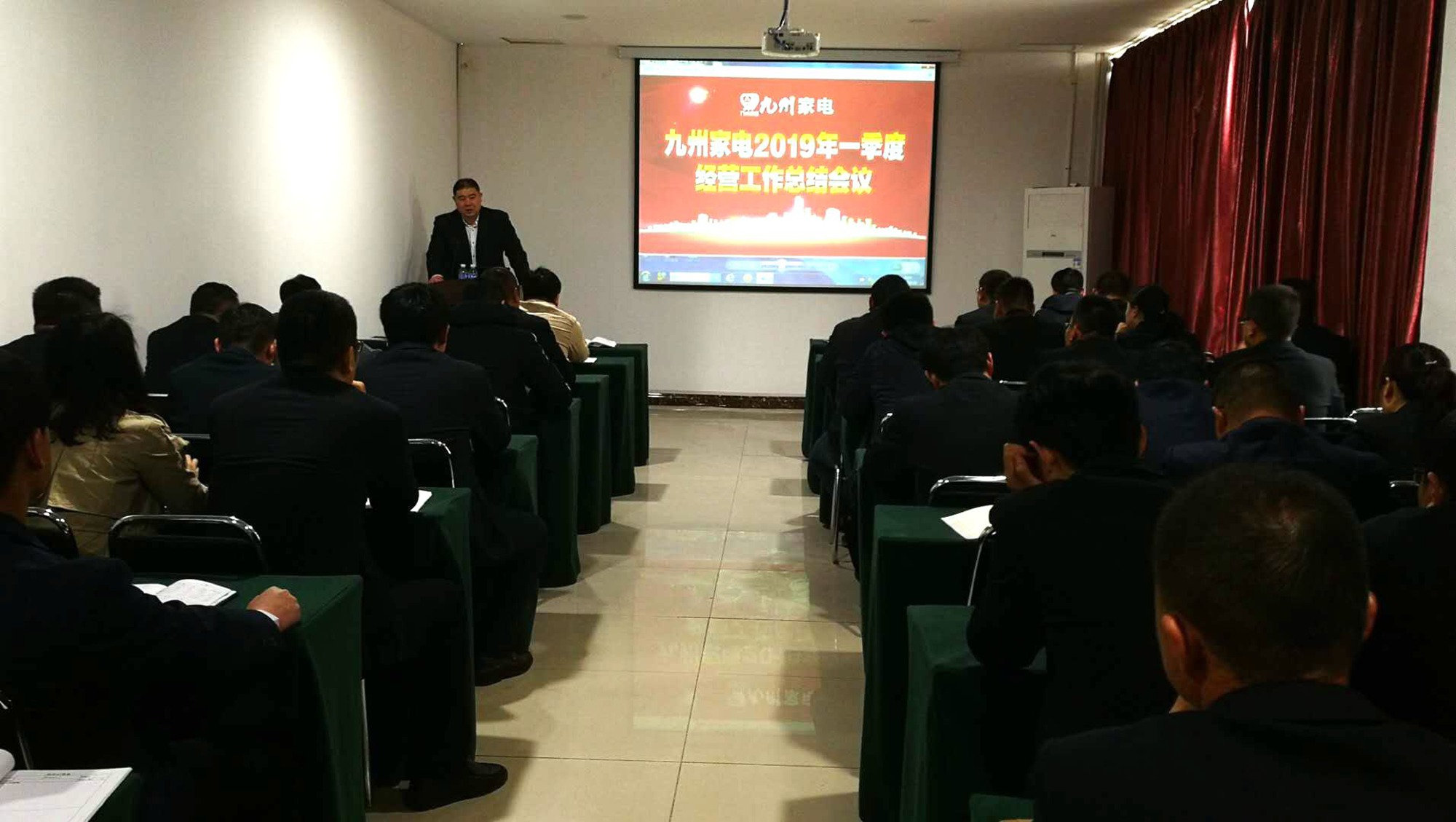 4月22日上午,九州家電在解放路店二樓會(huì)議室召開(kāi)2019年第一季度經(jīng)營(yíng)工作總結(jié)會(huì)。九州家電主管及以上管理人員共計(jì)60余人參加了會(huì)議。會(huì)議由公司總經(jīng)理王志軍主持。 會(huì)上,空調(diào)采購(gòu)部、臨沭店等部門負(fù)責(zé)人分別就本部門一季度經(jīng)營(yíng)工作開(kāi)展情況及二季度的工作計(jì)劃進(jìn)行了匯報(bào)。公司副總經(jīng)理張淑瑞就九州家電一季度整體經(jīng)營(yíng)情況、主要工作推進(jìn)情況做了詳細(xì)的總結(jié)分析,并部署了二季度的工作計(jì)劃。最后,王志軍對(duì)各部門經(jīng)營(yíng)管理情況進(jìn)行點(diǎn)評(píng),在肯定成績(jī)的同時(shí),重點(diǎn)指出了經(jīng)營(yíng)管理中存在的問(wèn)題與不足,要求全體管理人員要擺正自己的位置,多從自身找原因,開(kāi)拓思維,提升經(jīng)營(yíng)業(yè)績(jī);他特別對(duì)基層管理人員提出要求,要注重學(xué)習(xí),敢于管理,提升綜合能力,確保經(jīng)營(yíng)、管理工作的順利推進(jìn)。(文/王紀(jì)芳 圖/高艷艷 編輯/楊信才)