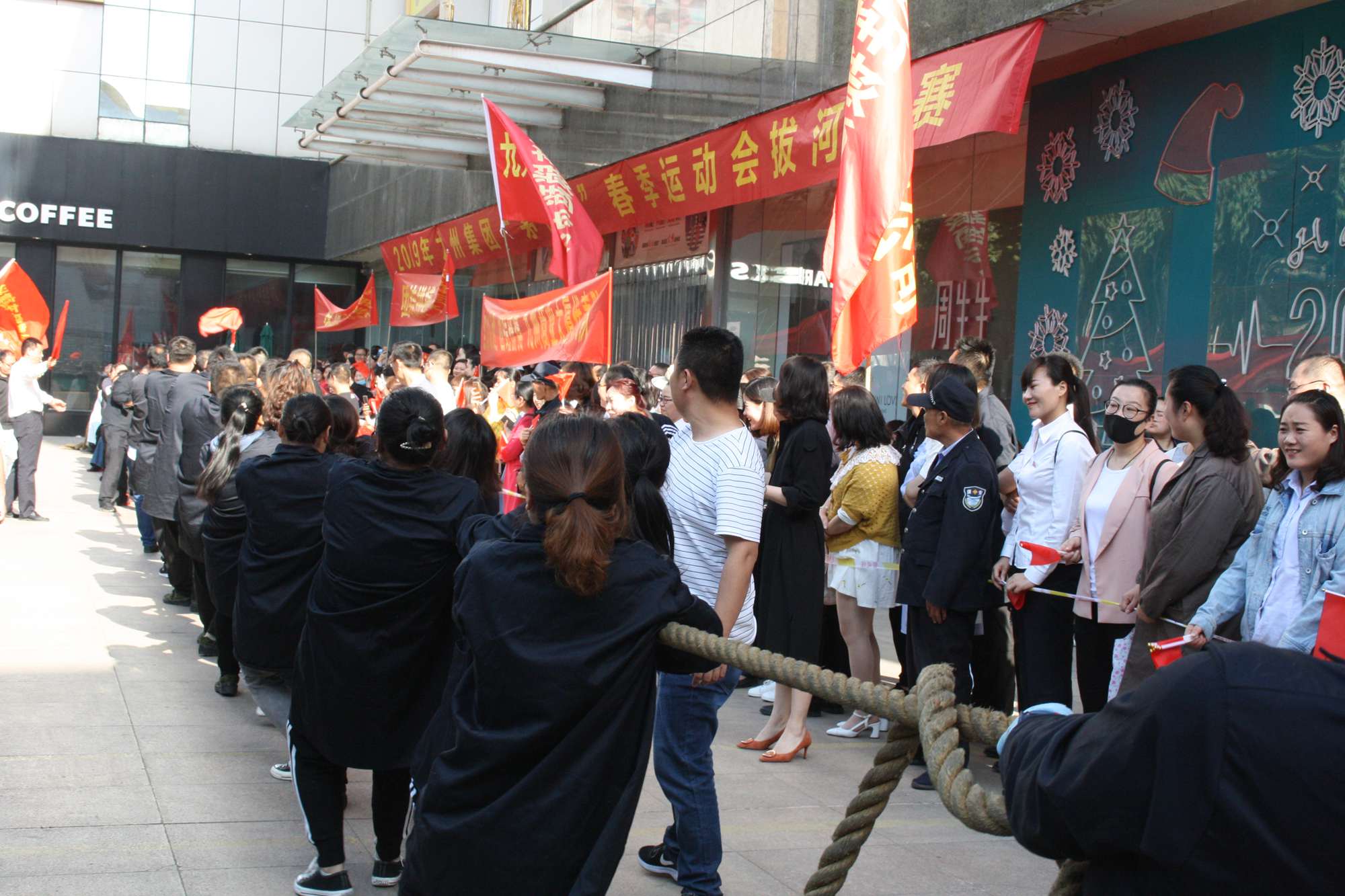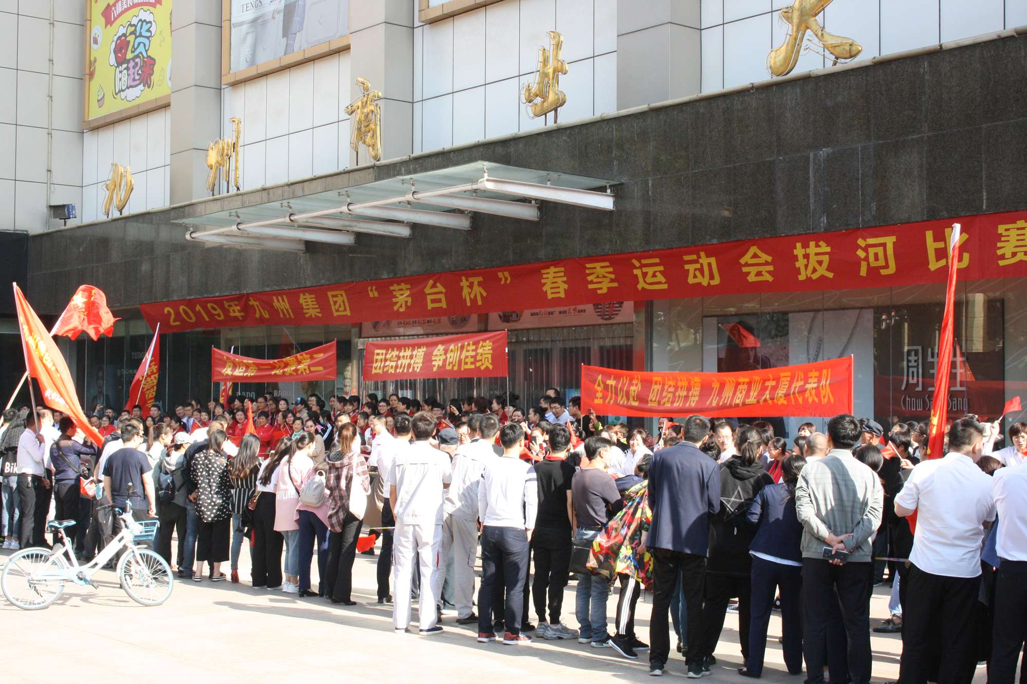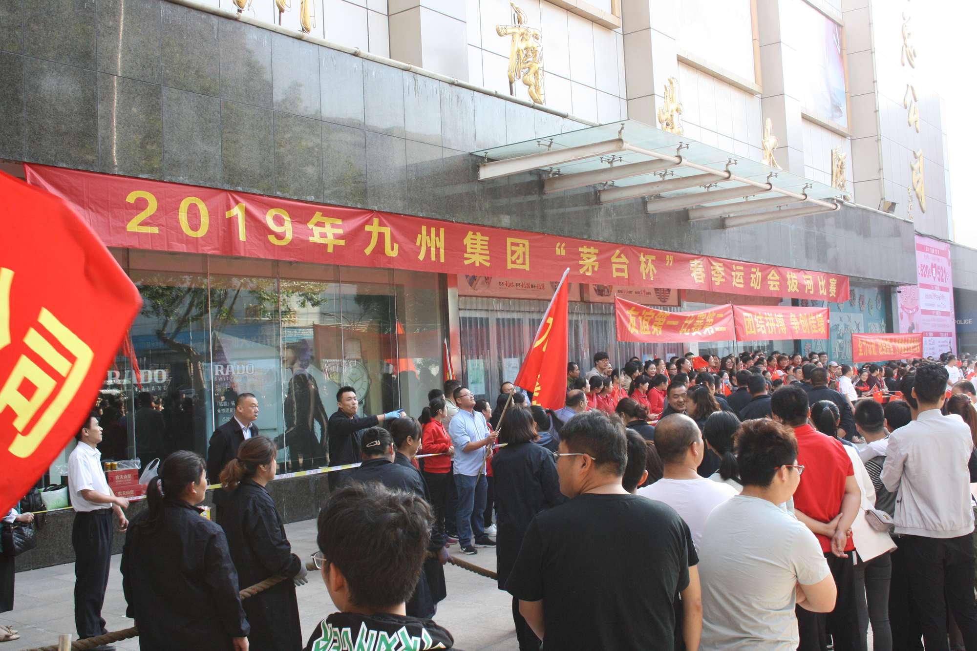 5月21日上午,九州集團2019年運動會拔河比賽項目在九州大廈解放路店門前廣場舉行。來自各經營單位和集團行政的六支代表隊參加了比賽。 整潔的街道,翠綠的樹木,清晨的城市少了喧嘩,多了一份安靜,此刻九州大廈門前廣場卻熱鬧非凡,比賽現場被激昂的標語環(huán)繞,每個人都熱情高漲。比賽尚未開始時,雙方參賽隊員就已經進入了戰(zhàn)斗狀態(tài),雙手緊握麻繩,雙腳用力著地,身體向后微傾,齊心協力擰成了一股繩。哨聲一響,雙方口號震天,有的隊員臉憋得通紅卻絲毫不放松,有的隊員干脆閉上眼睛卯足了勁兒往后拉。場下的啦啦隊也不甘落后,加油聲、吶喊聲、助威聲響徹四周。經過多輪比拼,臨沂賓館代表隊憑借強大的實力,嫻熟的比賽技術奪得冠軍,九州大廈代表隊和超市公司代表隊分獲亞軍和季軍,汽貿公司代表隊、九州家電代表隊和集團行政代表隊分獲第四、五、六名。(文/劉文靜)