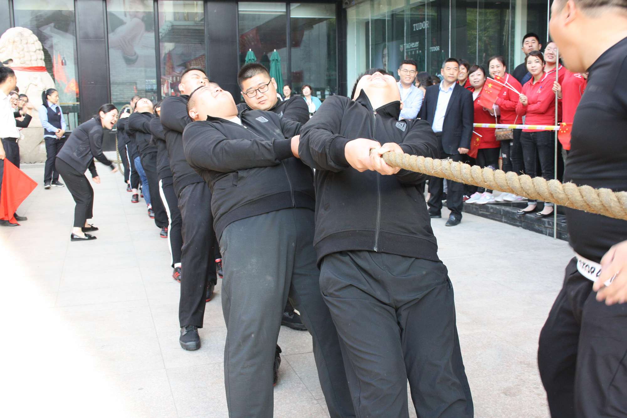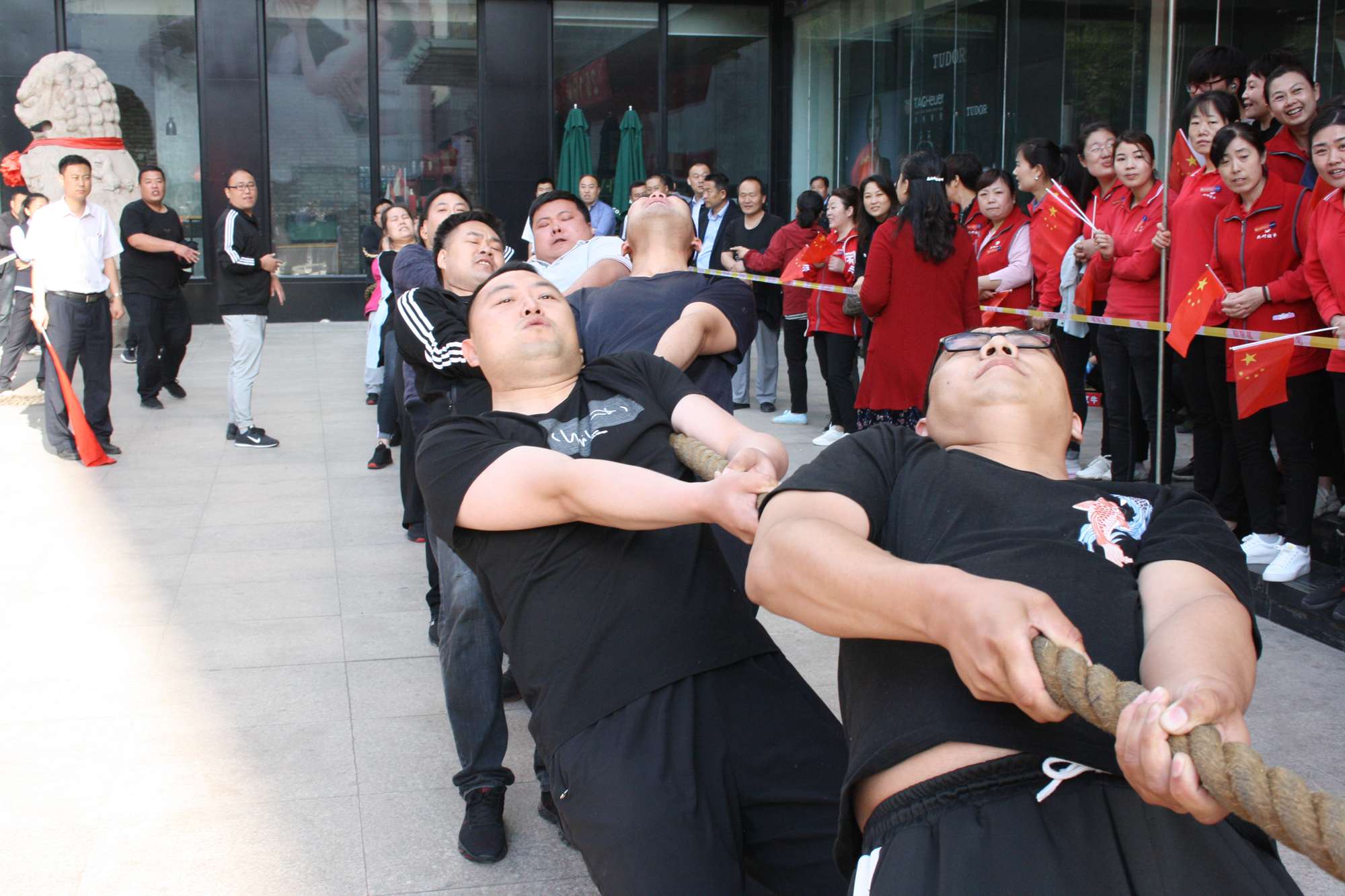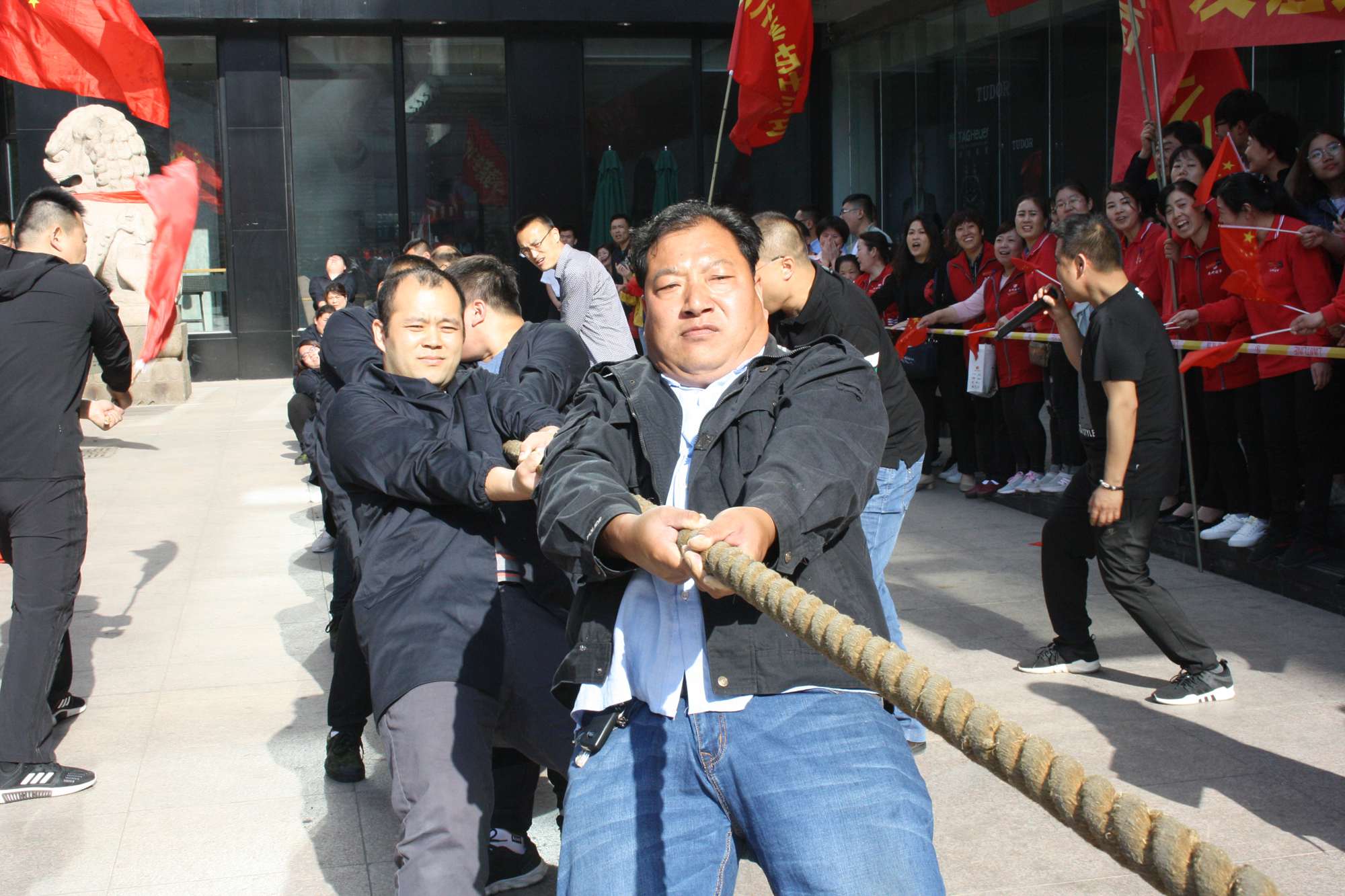 5月21日上午,九州集團2019年運動會拔河比賽項目在九州大廈解放路店門前廣場舉行。來自各經營單位和集團行政的六支代表隊參加了比賽。 整潔的街道,翠綠的樹木,清晨的城市少了喧嘩,多了一份安靜,此刻九州大廈門前廣場卻熱鬧非凡,比賽現場被激昂的標語環(huán)繞,每個人都熱情高漲。比賽尚未開始時,雙方參賽隊員就已經進入了戰(zhàn)斗狀態(tài),雙手緊握麻繩,雙腳用力著地,身體向后微傾,齊心協力擰成了一股繩。哨聲一響,雙方口號震天,有的隊員臉憋得通紅卻絲毫不放松,有的隊員干脆閉上眼睛卯足了勁兒往后拉。場下的啦啦隊也不甘落后,加油聲、吶喊聲、助威聲響徹四周。經過多輪比拼,臨沂賓館代表隊憑借強大的實力,嫻熟的比賽技術奪得冠軍,九州大廈代表隊和超市公司代表隊分獲亞軍和季軍,汽貿公司代表隊、九州家電代表隊和集團行政代表隊分獲第四、五、六名。(文/劉文靜)