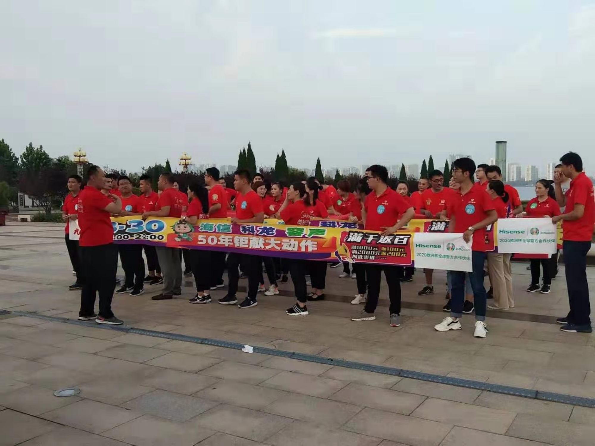 8月28日下午,九州家電“青春九州2019健步PK賽”在沂蒙廣場拉開帷幕,解放路店、楊莊店、北園路店以及后勤部門部分員工和廠家導購員共組建了6支隊伍參加了PK賽。 比賽正式開始前,參賽選手著裝整齊、精神飽滿的在沂蒙廣場英雄雕塑下集合。各隊隊員在隊長的帶領下,以富有創(chuàng)意和力量的隊呼為自己的團隊加油助威,振奮人心的口號聲在沂蒙廣場此起彼伏,鼓舞著每一位參賽隊員,也吸引了眾多路人駐足觀看。 參賽隊伍從沂蒙廣場出發(fā),沿濱河岸邊一路行走,到達鳳凰廣場后再次返回沂蒙廣場。大家結伴而行,比賽的同時不忘欣賞沿途美景,呼吸清新空氣,喊著響亮的口號,在一片歡聲笑語中,你追我趕,好不熱鬧。參賽隊員們本著安全第一、友誼第二、比賽第三的精神,團結一致,互相鼓勵,攜手并進,最后全部順利抵達終點。最終,楊莊店團隊獲得健步行PK賽的第一名。 通過舉辦活動,宣傳綠色出行、文明出行理念,展現(xiàn)了九州家電員工文明健康、積極樂觀的生活態(tài)度。同時,也提高了員工的身體素質,加深了彼此之間的友誼,進一步激發(fā)了員工內(nèi)心昂首奮進的激情和對生活的無限熱愛。ㄎ膱D/朱清悅)