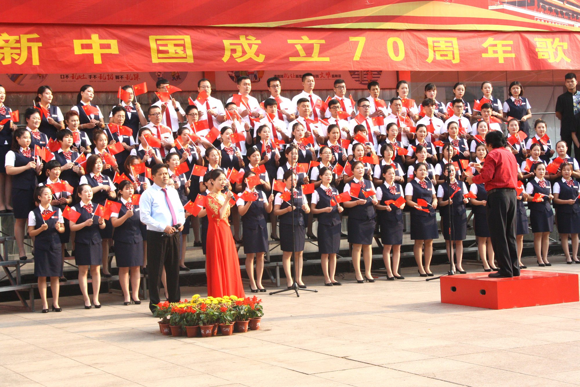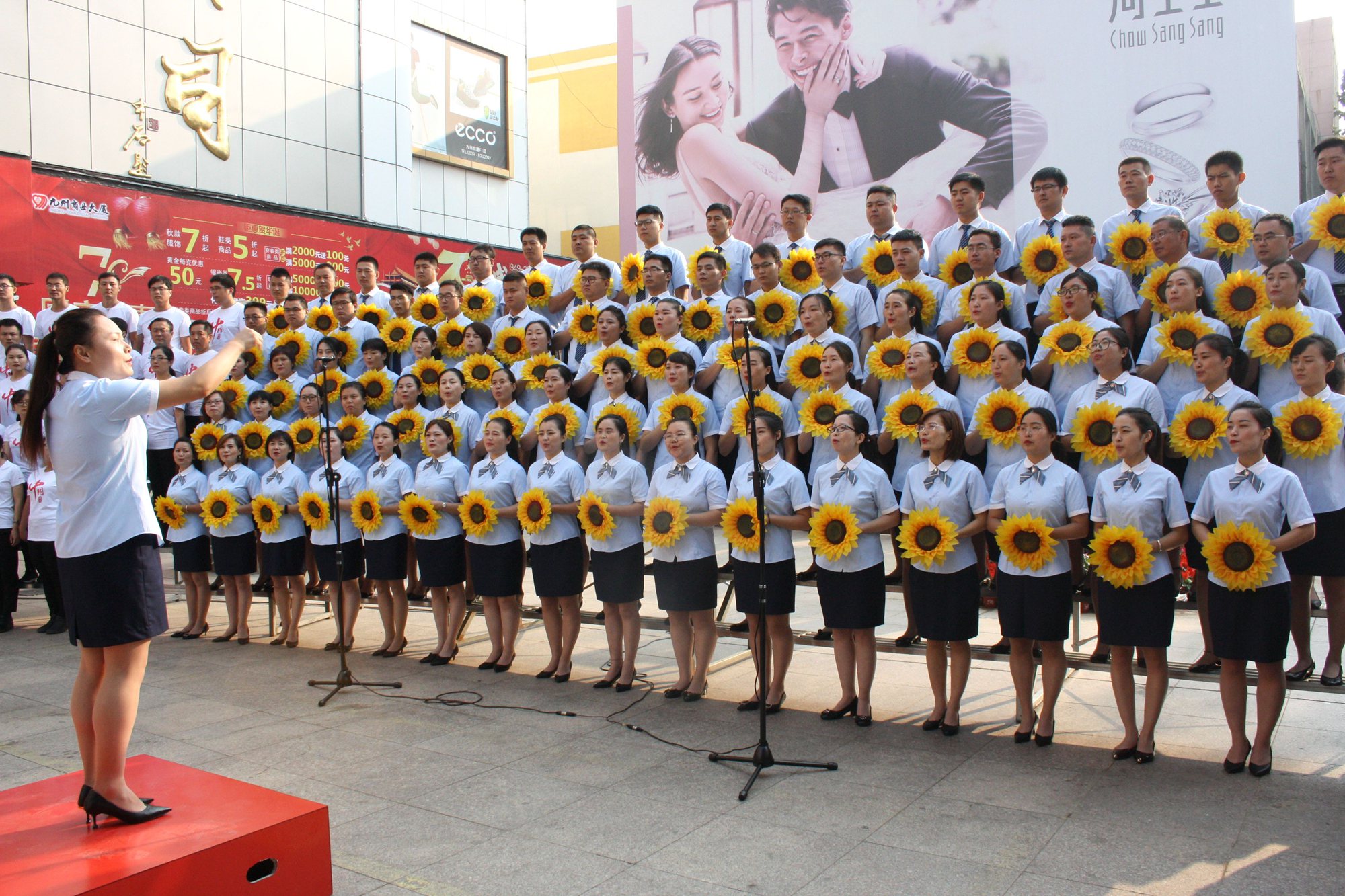躬逢新時代,頌歌獻祖國。9月30日早上,集團在九州商業(yè)大廈門前廣場舉辦慶祝新中國成立70周年歌詠比賽,來自各經(jīng)營單位和集團行政處室的六支代表隊共計450余人參加了比賽。 余音繞梁,群情激昂,或雄壯,或深情,或火熱,或沉醉,六支代表隊用動聽的歌聲直抒對祖國的滿腔熱愛,展現(xiàn)新時代九州人深厚的愛國情懷。“起來,不愿做奴隸的人們,把我們的血肉筑成我們新的長城……”比賽伊始,舉行升國旗儀式,伴隨著緩緩升起的五星紅旗,六支代表隊齊唱國歌,斗志昂揚。隨后,全體大合唱《九州集團之歌》更加彰顯了九州員工蓬勃向上、意氣風(fēng)發(fā)的精神風(fēng)貌。本次比賽,每支代表隊演唱兩首參賽曲目,以歌詠志、以歌抒懷!蹲鎳灐贰段液臀业淖鎳贰侗Pl(wèi)黃河》《大中國》《沒有共產(chǎn)黨就沒有新中國》《歌唱祖國》《不忘初心》《我愛你中國》《祖國不會忘記》《愛我中華》等一首首膾炙人口的歌曲陸續(xù)唱響,唱出了九州人對祖國母親的無限熱愛和美好祝福。嘹亮的歌聲在現(xiàn)場久久回蕩,吸引了越來越多的行人駐足觀看,現(xiàn)場響起一陣又一陣的掌聲。比賽的最后,所有參賽隊員及現(xiàn)場觀眾在指揮老師的統(tǒng)一指揮下,共同唱響《歌唱祖國》,“五星紅旗迎風(fēng)飄揚,勝利歌聲多么嘹亮,歌唱我們親愛的祖國,從今走向繁榮富強……”熟悉的旋律伴隨著飄揚的五星紅旗,將現(xiàn)場的氣氛推向高潮,本次比賽圓滿落下帷幕。 同唱愛國歌,共筑九州夢。當(dāng)下,九州人將青春與熱血融入旋律,將情懷與夢想融入歌聲,獻禮祖國。而今后,九州人將繼續(xù)緊隨偉大祖國發(fā)展步伐,不忘初心,砥礪奮進,再創(chuàng)事業(yè)新輝煌。(文/劉文靜)