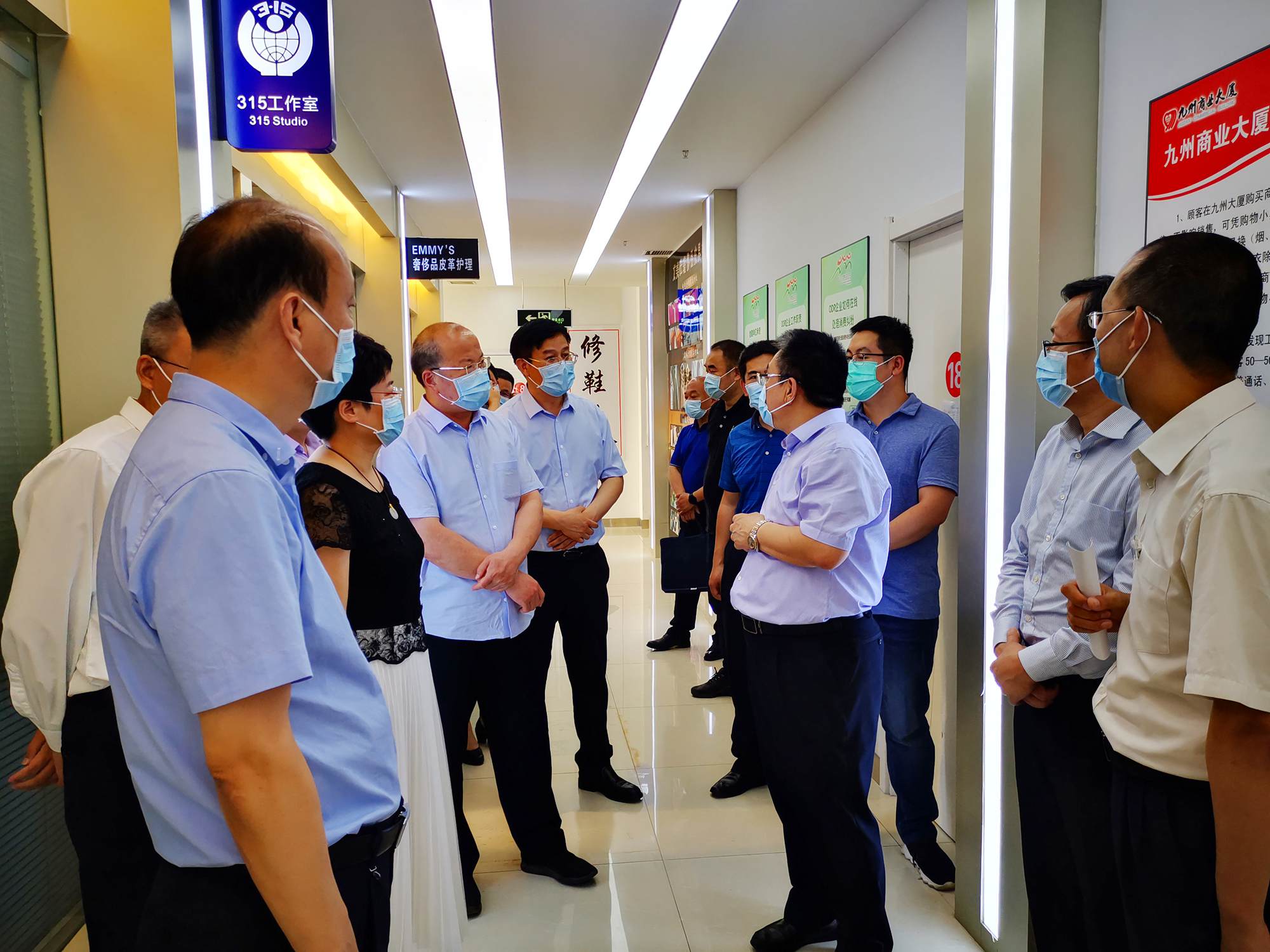 6月3日上午,省市場監(jiān)管局網(wǎng)監(jiān)處處長趙風(fēng)勇、市市場監(jiān)管局局長黃杰、區(qū)政協(xié)主席李玉華、區(qū)委副書記李春仲、副區(qū)長王翠寶一行到九州大廈調(diào)研“放心消費在山東”創(chuàng)建工作。集團董事長、總經(jīng)理楊永東,九州大廈總經(jīng)理馮其艷等陪同。