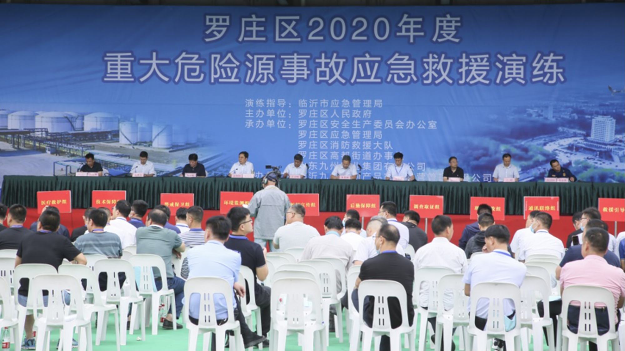 6月30日上午,羅莊區(qū)2020年度重大危險源事故應(yīng)急救援演練在超市公司九州冷庫舉行,羅莊區(qū)委常委、常務(wù)副區(qū)長張偉峰,區(qū)人大副主任楊翠曉,羅莊區(qū)應(yīng)急管理局局長蘭秀利,應(yīng)急專家朱化雨,集團(tuán)董事長、總經(jīng)理楊永東出席演練活動。羅莊區(qū)各街鎮(zhèn)分管負(fù)責(zé)人、區(qū)安委會成員單位的分管負(fù)責(zé)人及區(qū)各企業(yè)主要負(fù)責(zé)人等300余人現(xiàn)場觀摩。