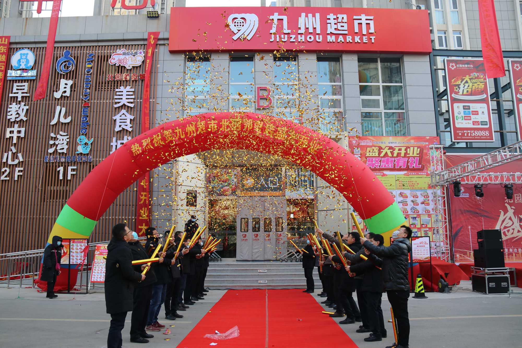 1月8日上午,位于蘭山區(qū)師院東街與后園巷交匯處的九州超市北園鄰里店盛裝開業(yè)。