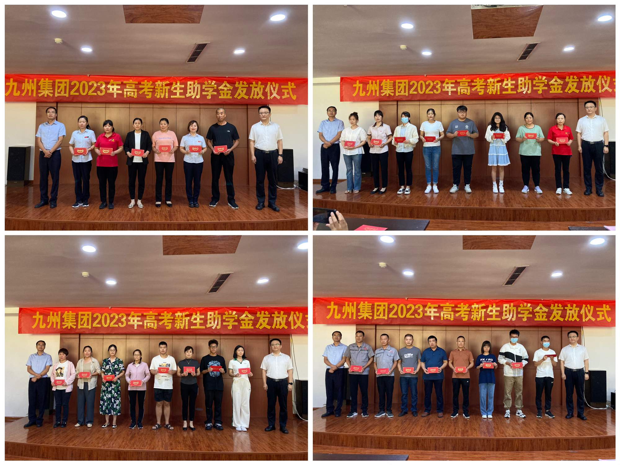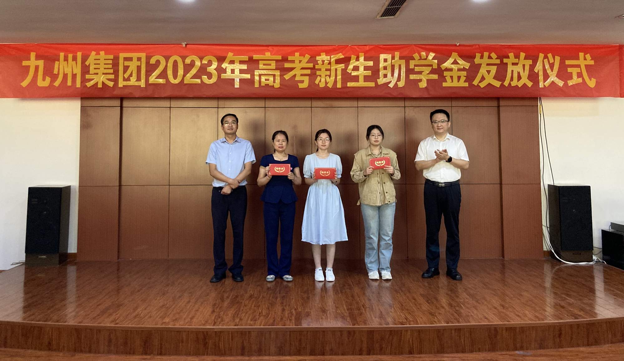 會(huì )上,為升入大學(xué)的職工子女頒發(fā)九州集團2023年高考助學(xué)金。本年度,集團共為91名升入大學(xué)的職工子女發(fā)放高考助學(xué)金共計23.5萬(wàn)元。
