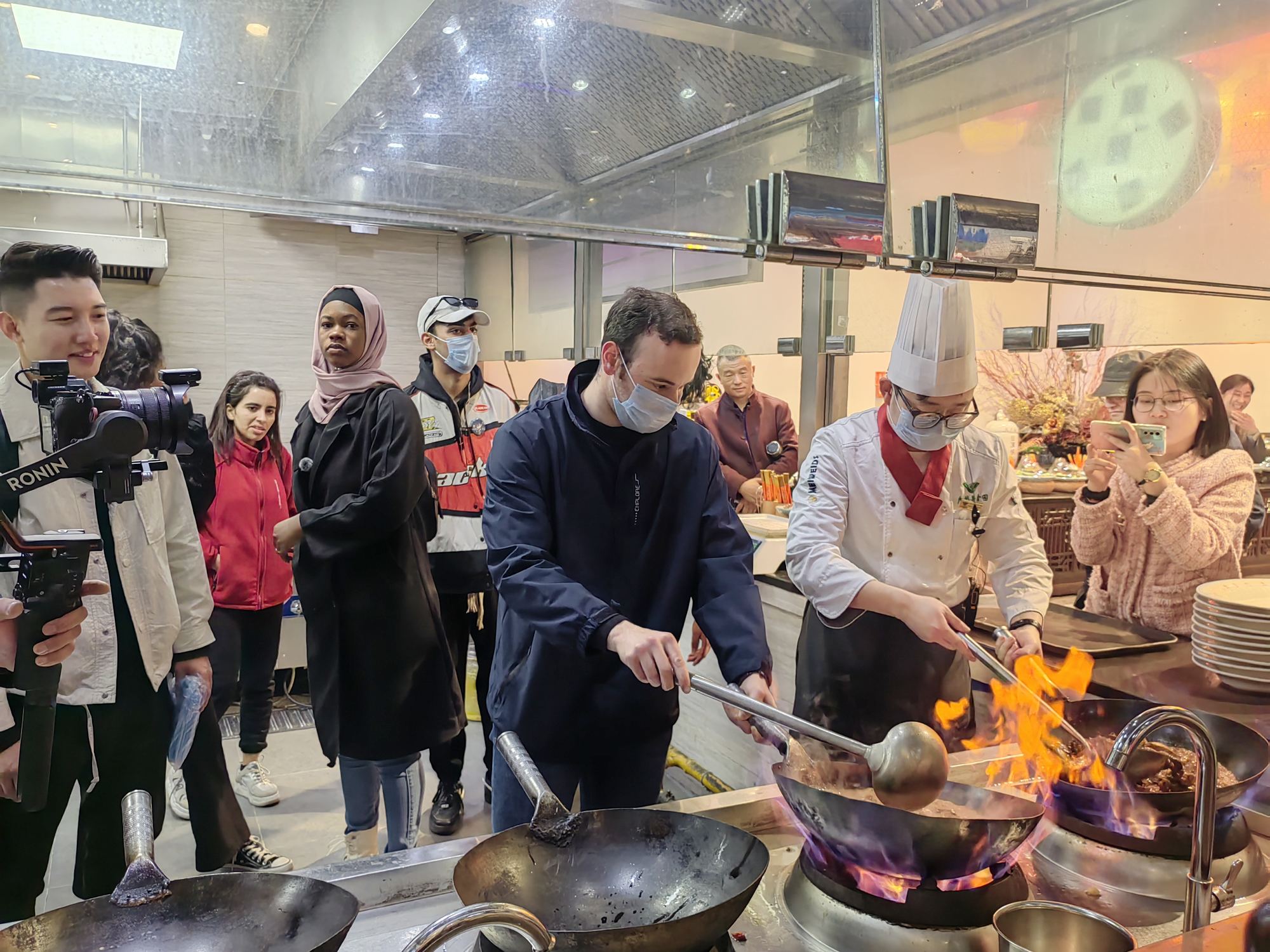 3月23日上午,由臨沂市委宣傳部、市外事辦主辦,蘭山區委宣傳部和金雀山街道協(xié)辦的在臨國際友人“感知新臨沂”活動(dòng)走進(jìn)臨沂賓館沂蒙路店九州美食園,了解和品嘗臨沂特色美食——臨沂炒雞。