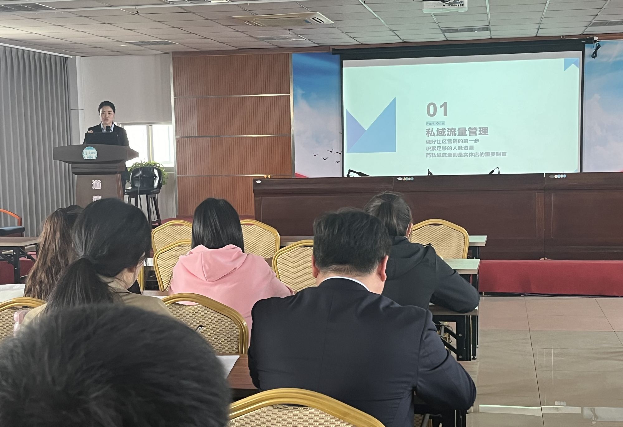 本次培訓由集團信息電商部經(jīng)理吳瑞偉、助理工程師姚楠,東華花園店助理石慧講授。吳瑞偉結合各門(mén)店微信社群及抖音視頻平臺運營(yíng)情況詳細分析了門(mén)店目前存在的各類(lèi)運營(yíng)問(wèn)題,并給予相應的改進(jìn)建議;姚楠詳細講解了私域流量轉化、抖音來(lái)客實(shí)操、視頻拍攝及直播技巧等內容;石慧分享了門(mén)店線(xiàn)上線(xiàn)下?tīng)I銷(xiāo)經(jīng)驗、微信社群維護技巧等知識。
