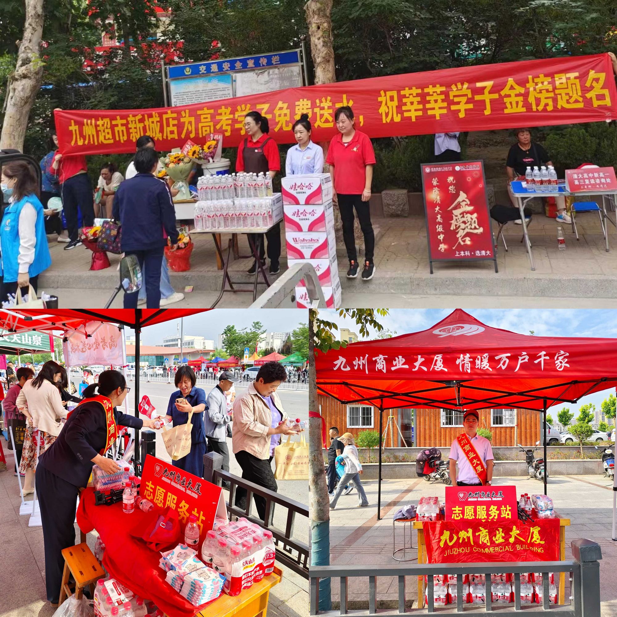 九州商業(yè)大廈各部門(mén)也積極組織員工到高考考點(diǎn)提供送水服務(wù),在炎炎夏日為考生及家長(cháng)們送上一絲清涼,獻上一份愛(ài)心。