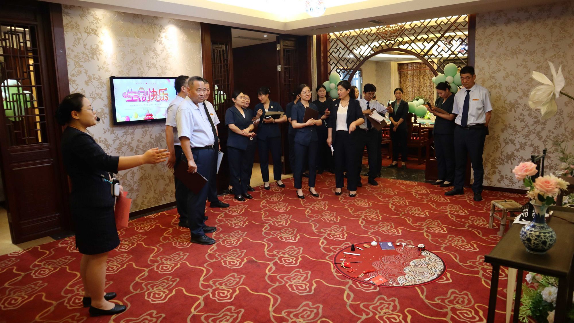 為更好地為顧客提供沉浸式、場(chǎng)景化的服務(wù)體驗,6月25日至26日,臨沂賓館舉行了場(chǎng)景布置比賽。各店餐廳部、房務(wù)部分別對餐廳包間、餐廳小型宴會(huì )廳或會(huì )議室、客房房間進(jìn)行主題設計、講解。