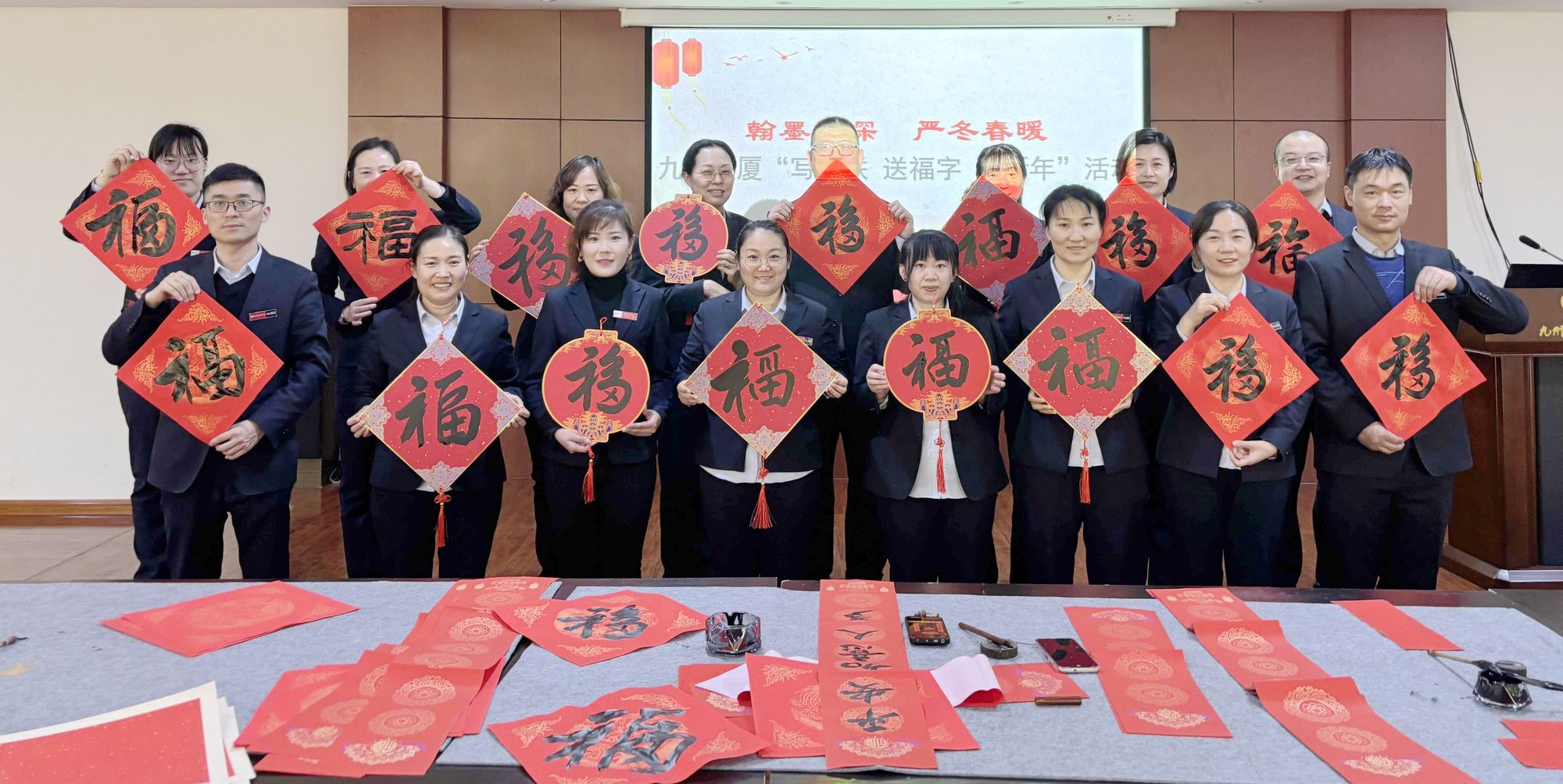新春佳節來(lái)臨之際,為弘揚中華民族優(yōu)秀傳統文化,豐富職工文化生活,1月10日下午,九州商業(yè)大廈黨總支聯(lián)合大廈工會(huì )分會(huì )、團支部在七樓職工培訓室組織開(kāi)展了“寫(xiě)春聯(lián) 送福字 迎新年”活動(dòng)。