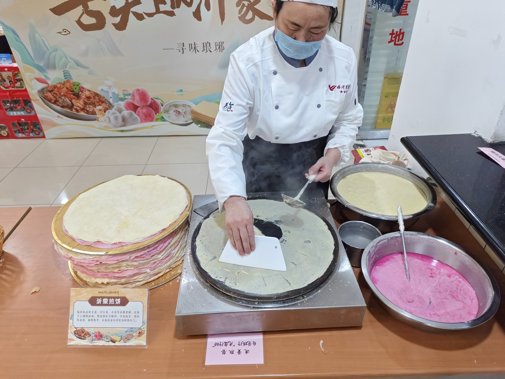 活動(dòng)期間,臨沂賓館廚師團隊應邀入駐中國貿促會(huì )機關(guān)食堂,每日午餐匠心烹制熱菜、特色醬菜等菜品。其間,精心推出了臨沂炒雞、蒙山全羊湯、醇香糝湯、蒙陰光棍雞、酥香牛蒡等12道地道沂蒙菜肴;現場(chǎng)烙制臨沂煎餅,搭配特色馓子、香椿、蒜薹等,讓賓客沉浸式體驗沂蒙傳統特色美食,受到賓客一致好評。