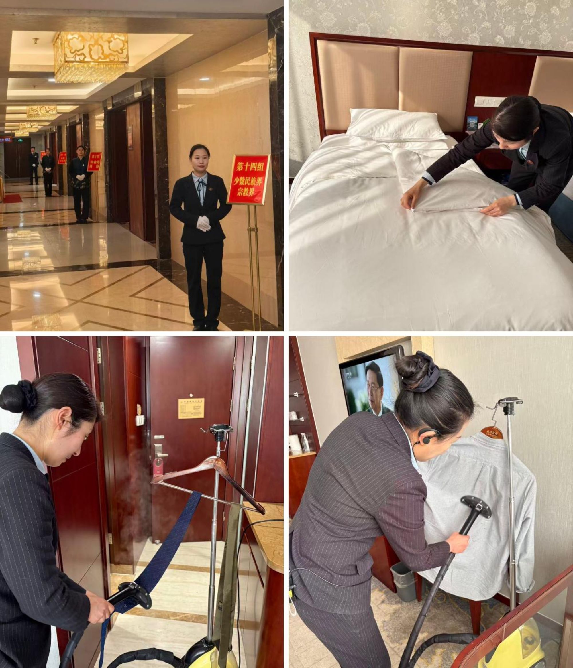 為保障大會的成功接待,臨沂賓館沂蒙路店組建專項接待小組,制定周密方案,細化責任分工。從會場布置、設備調試到客房清潔、用餐服務、車輛引導及應急保障,各部門緊密配合,服務各環(huán)節(jié)無縫對接,為委員們營造了舒適溫馨的住宿、用餐、會議環(huán)境。接待期間賓館推出一系列貼心舉措:會務團隊及時根據(jù)會議動態(tài)調整上下班時間,提升響應效率,做好會場準備;廚房團隊精心定制融合傳統(tǒng)魯菜與健康膳食理念的“專屬”菜單,收到委員們廣泛好評;客房服務團隊主動為委員們熨燙衣物,體現(xiàn)了服務的細致與貼心。