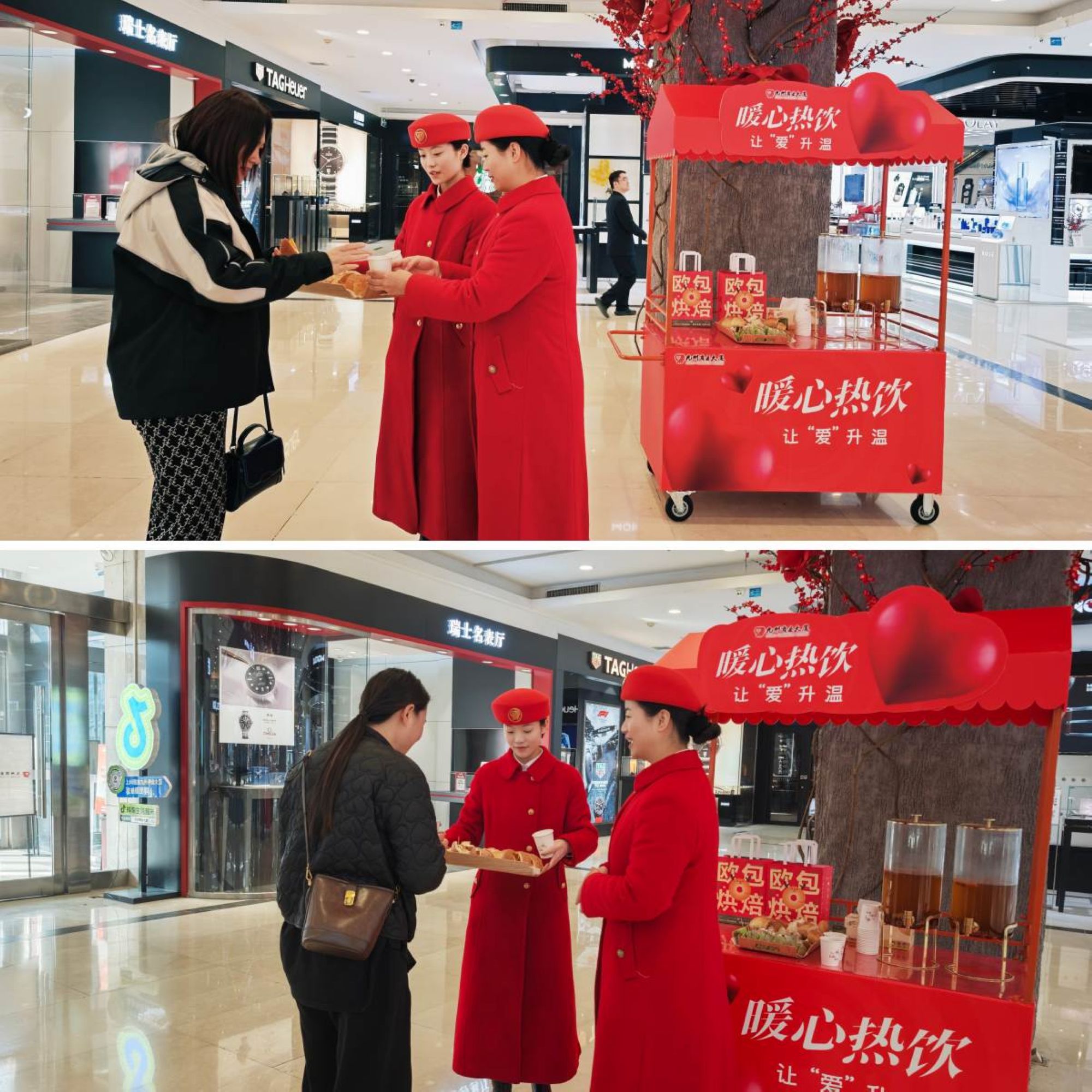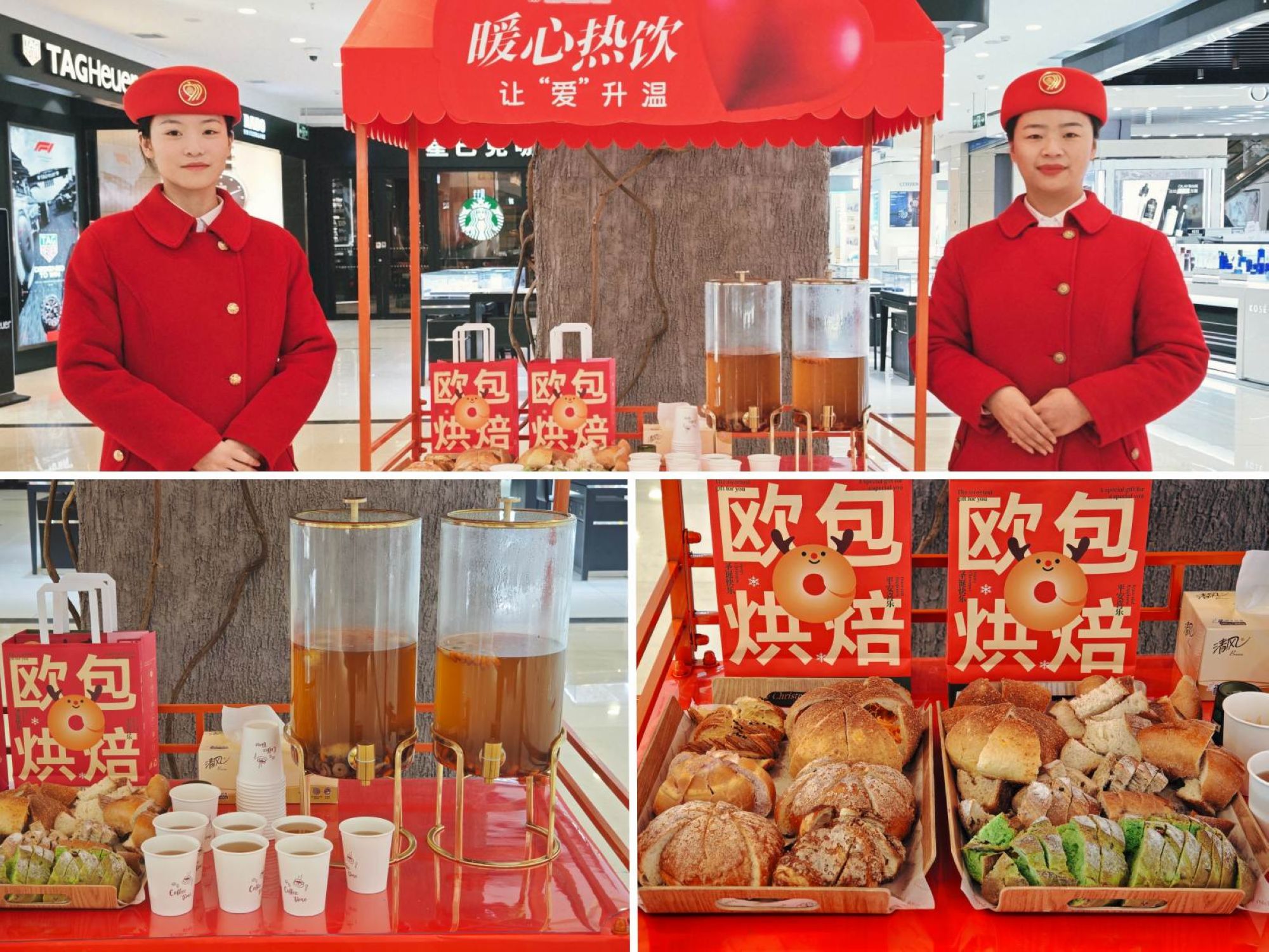 活動現(xiàn)場布置了以紅色為主題的暖心熱飲站,備有菊花去火茶、雪梨潤喉茶、生姜暖胃茶等熱飲,搭配歐包烘焙小面包供顧客免費(fèi)品嘗。工作人員面帶微笑,為往來顧客遞上一杯杯溫?zé)岬牟栾,讓顧客在購物之余感受到實實在在的關(guān)懷,也讓九州商業(yè)大廈成為冬日里的“溫暖坐標(biāo)”,為顧客驅(qū)走冬日里的嚴(yán)寒冷意。